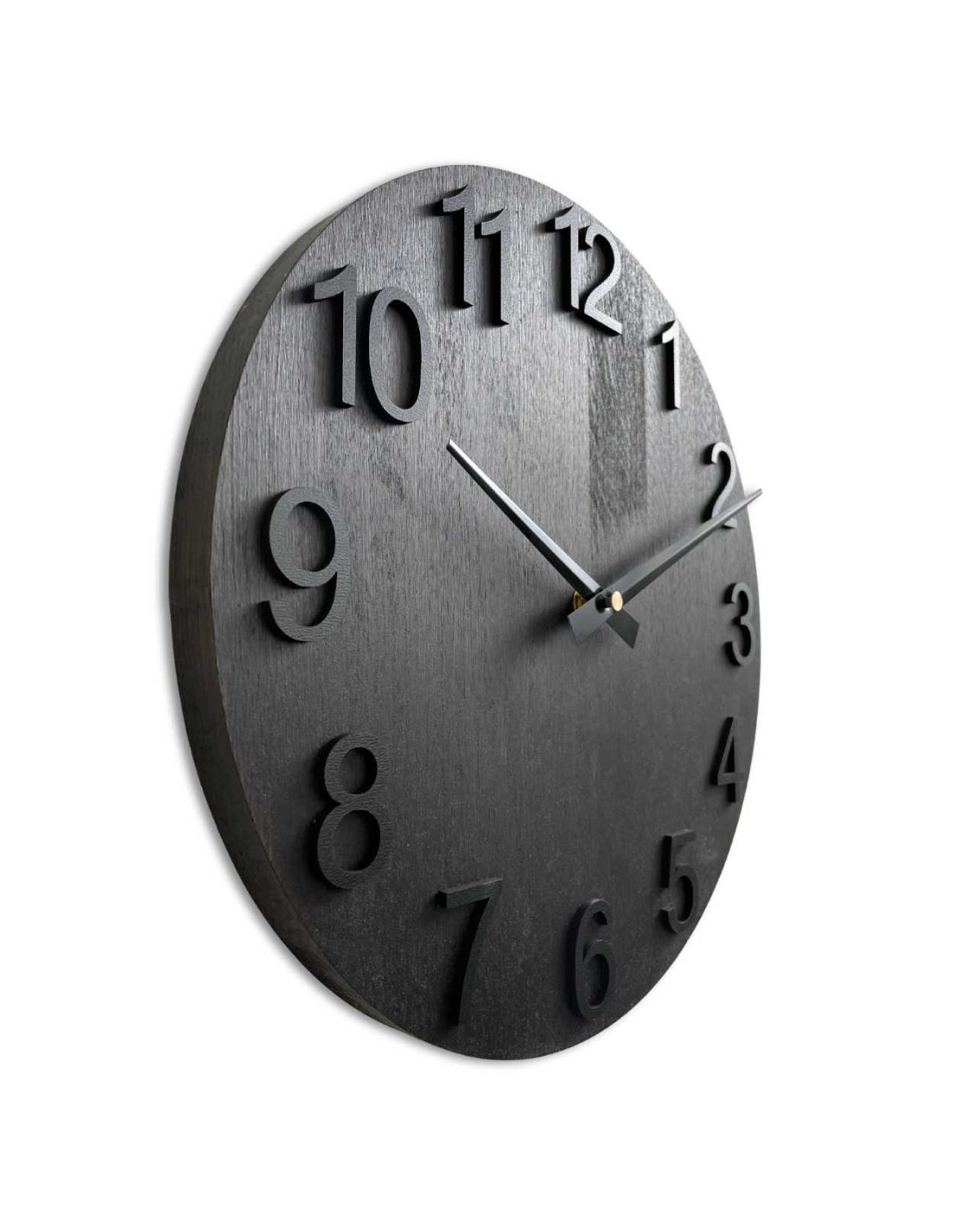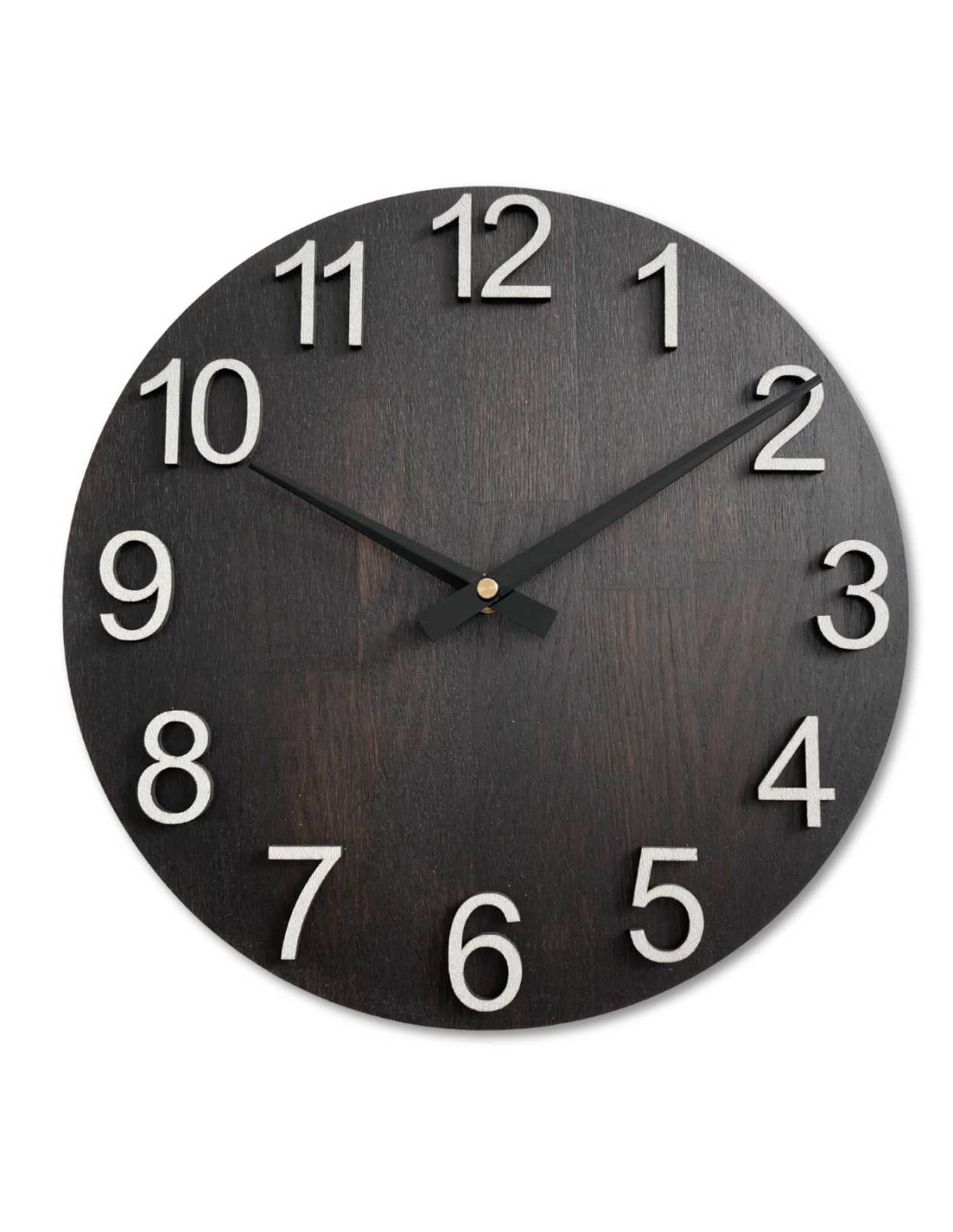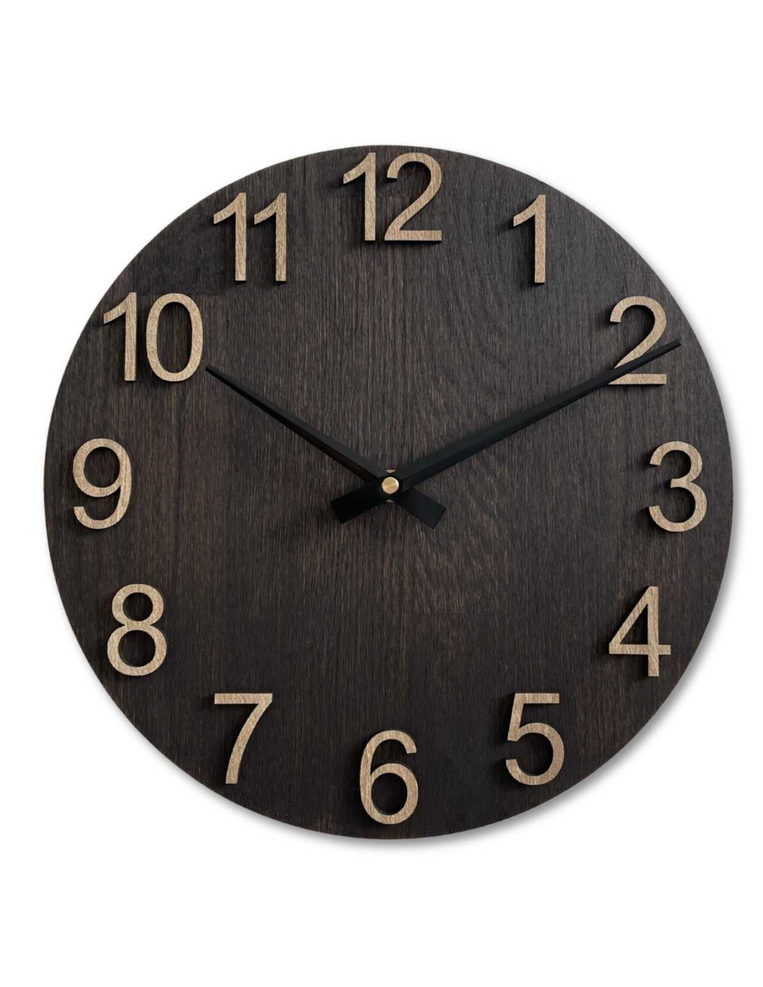 Każdy zegar wykonany jest z litych paneli dębowych, które najpierw są precyzyjnie wycinane przy użyciu technologii CNC, nadając im pożądany kształt i rozmiar.