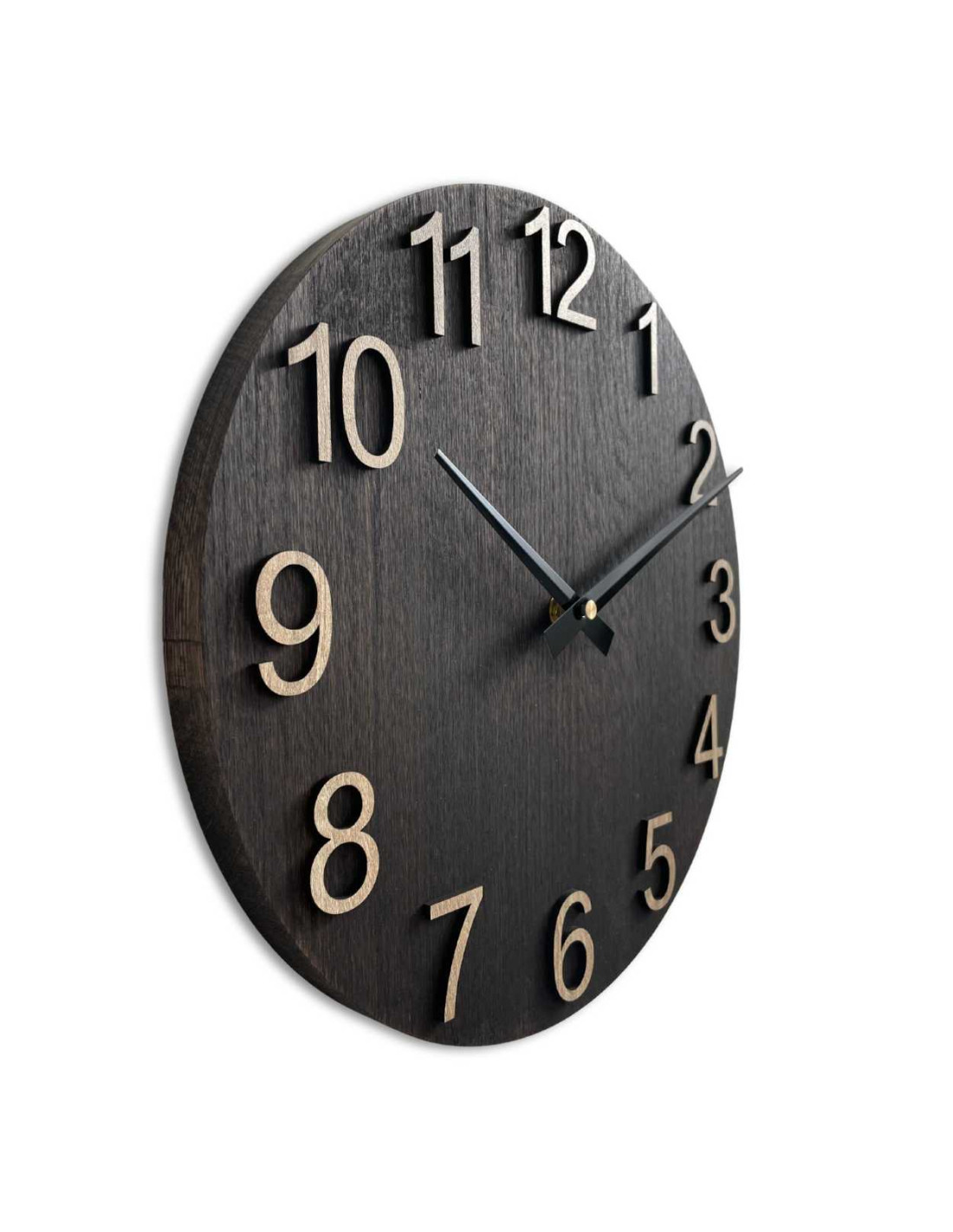 ➡️ Struktura: Każdy zegar jest unikalny, ponieważ każde drewno ma inną teksturę, układ włókien i odcień.