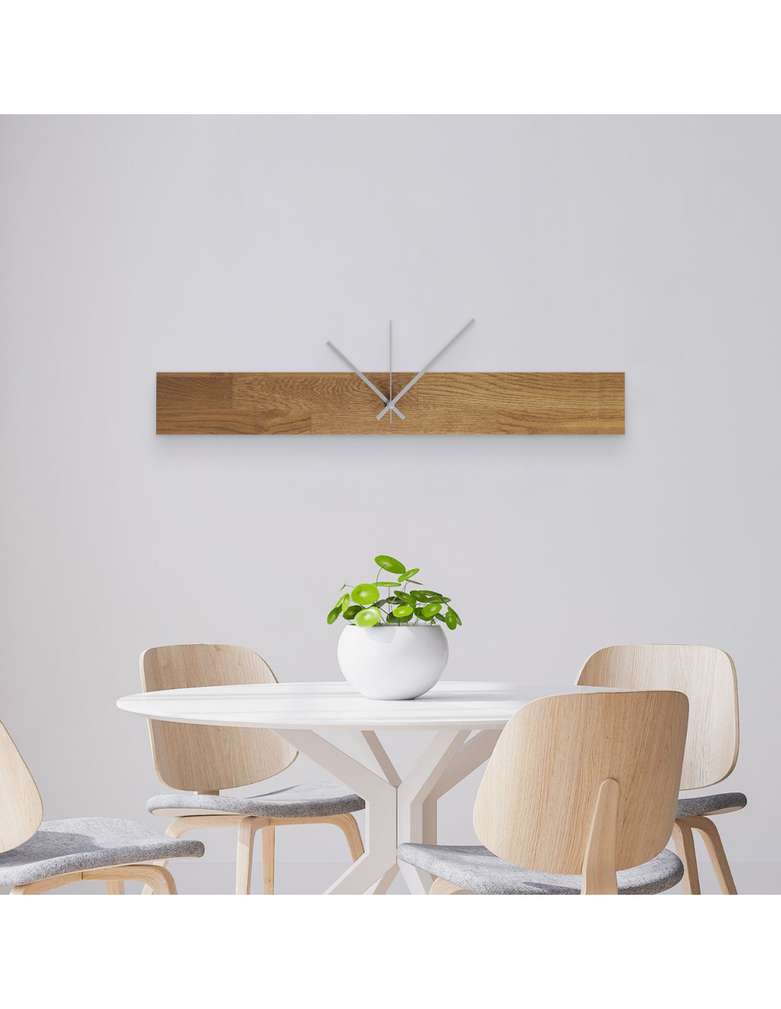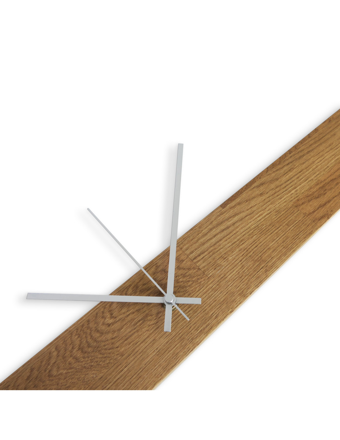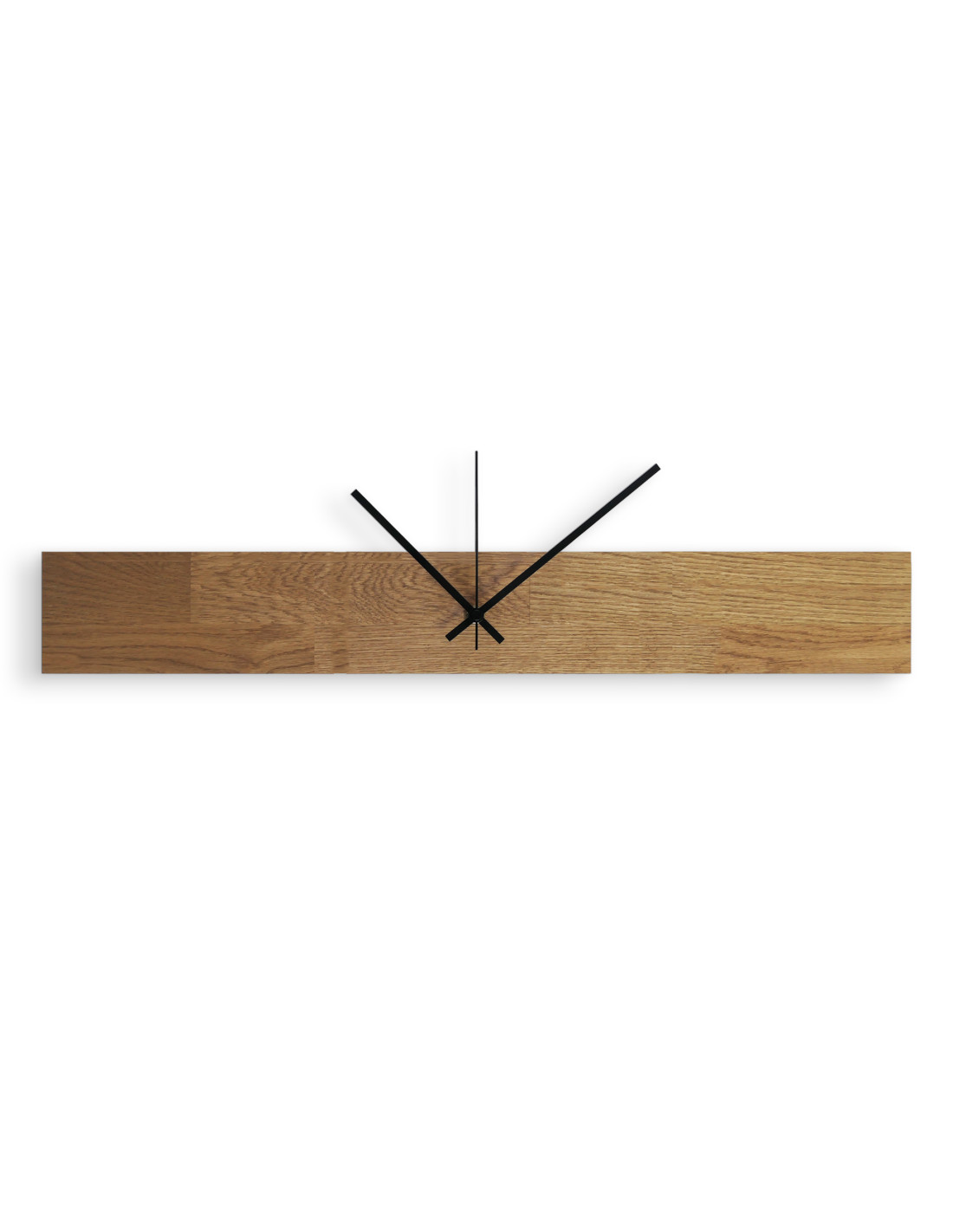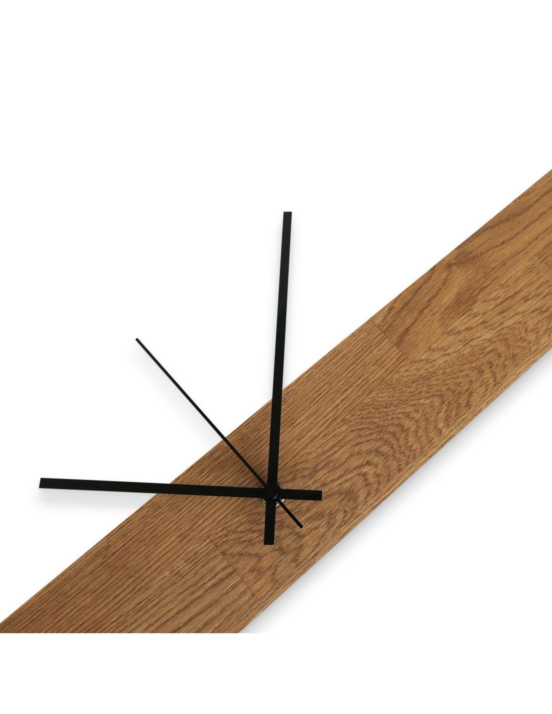 Każdy zegar wykonany jest z litych paneli dębowych , które najpierw są precyzyjnie wycinane przy użyciu technologii CNC, nadając im pożądany kształt i rozmiar.