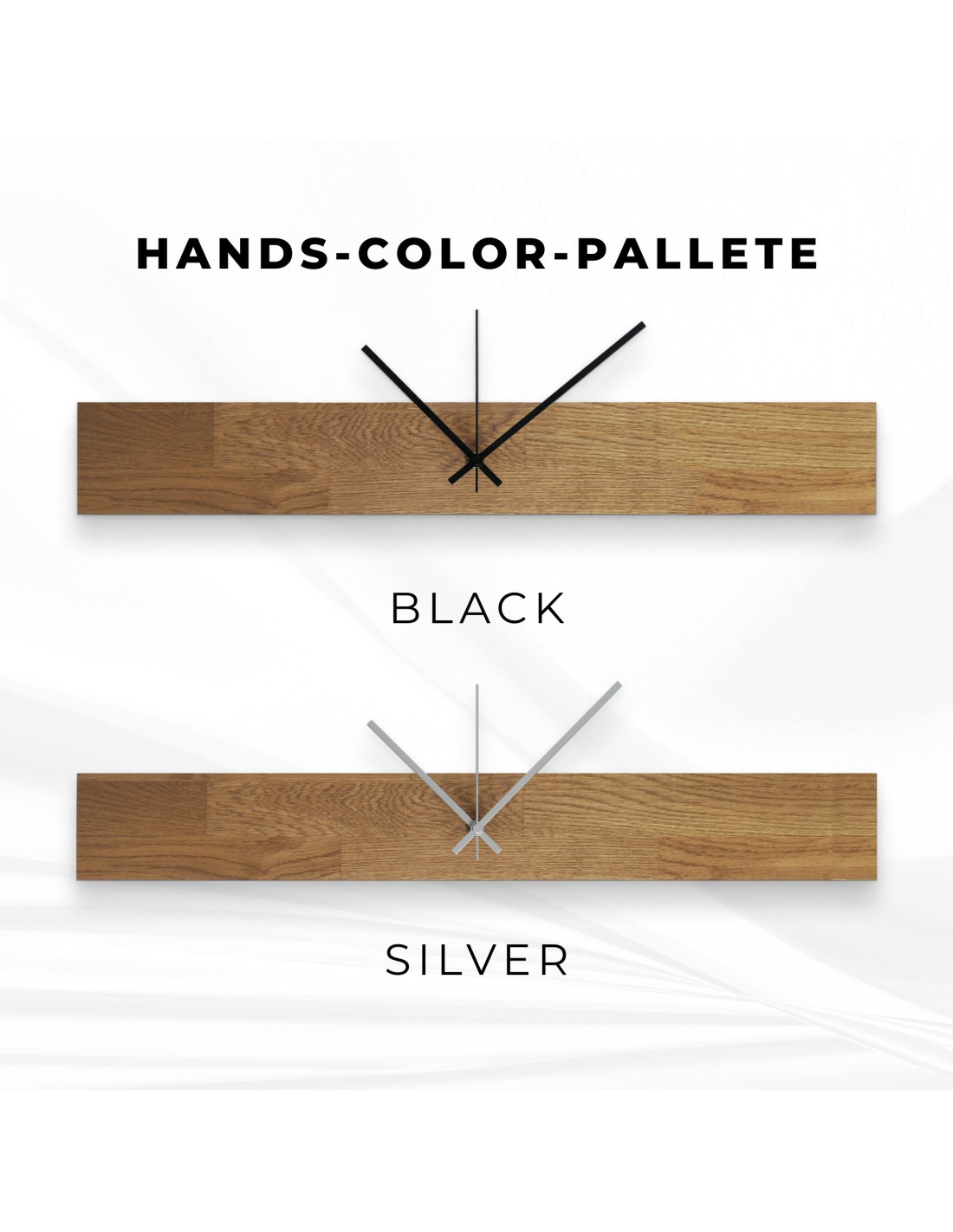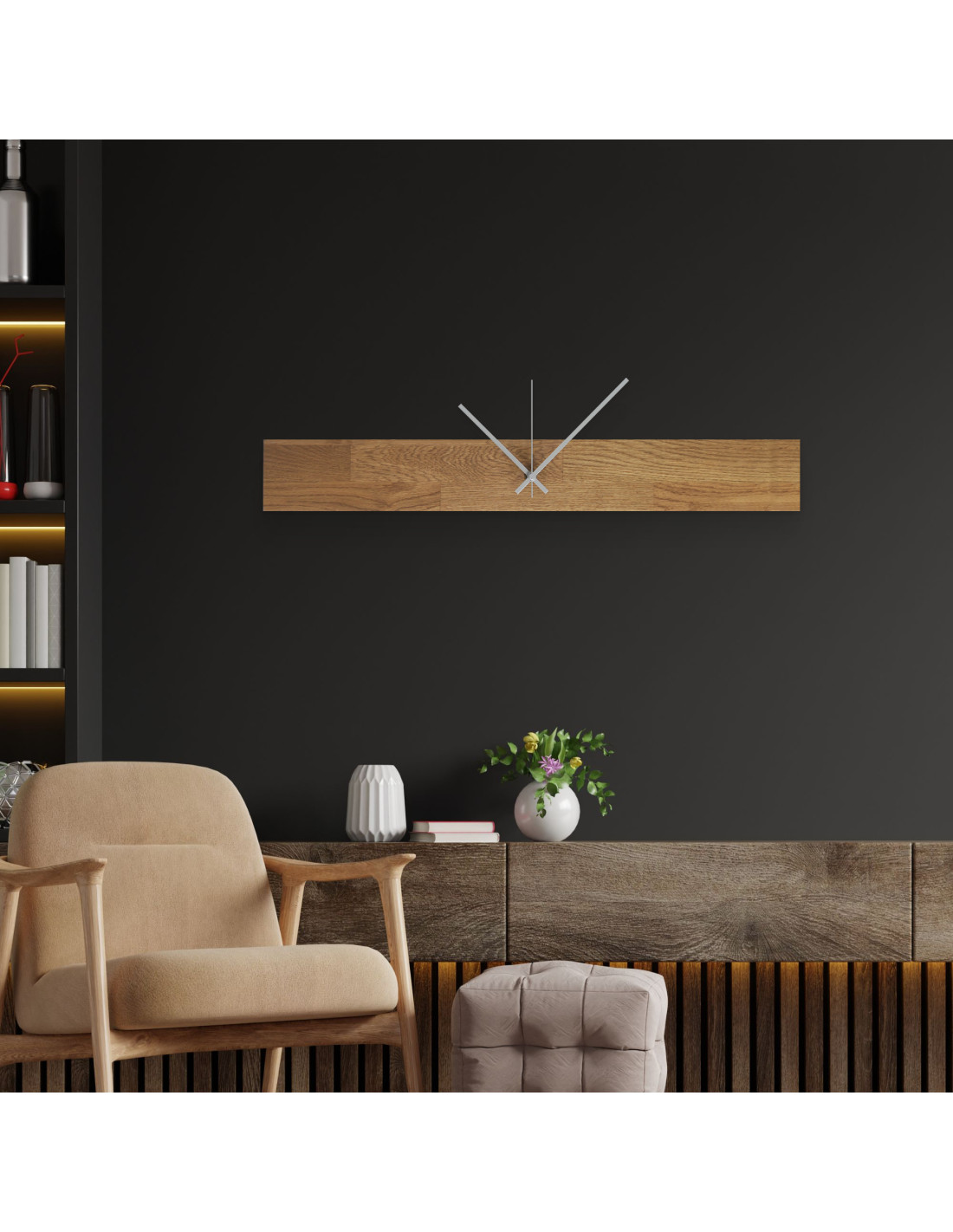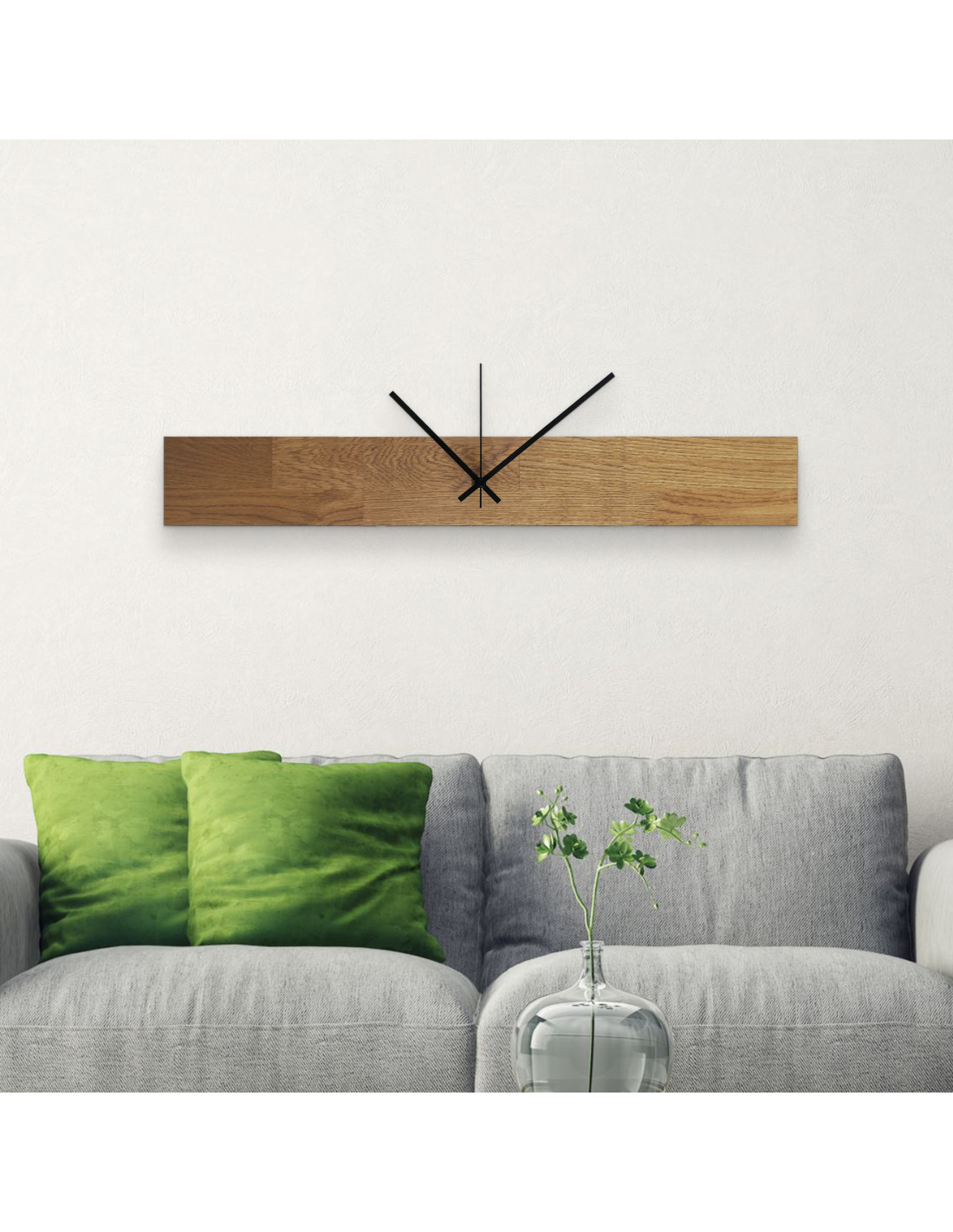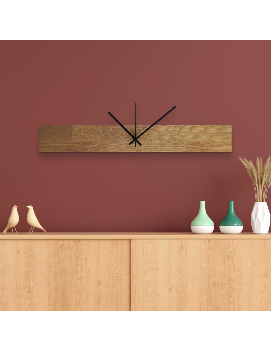 Każdy zegar wykonany jest z litych paneli dębowych , które najpierw są precyzyjnie wycinane przy użyciu technologii CNC, nadając im pożądany kształt i rozmiar.