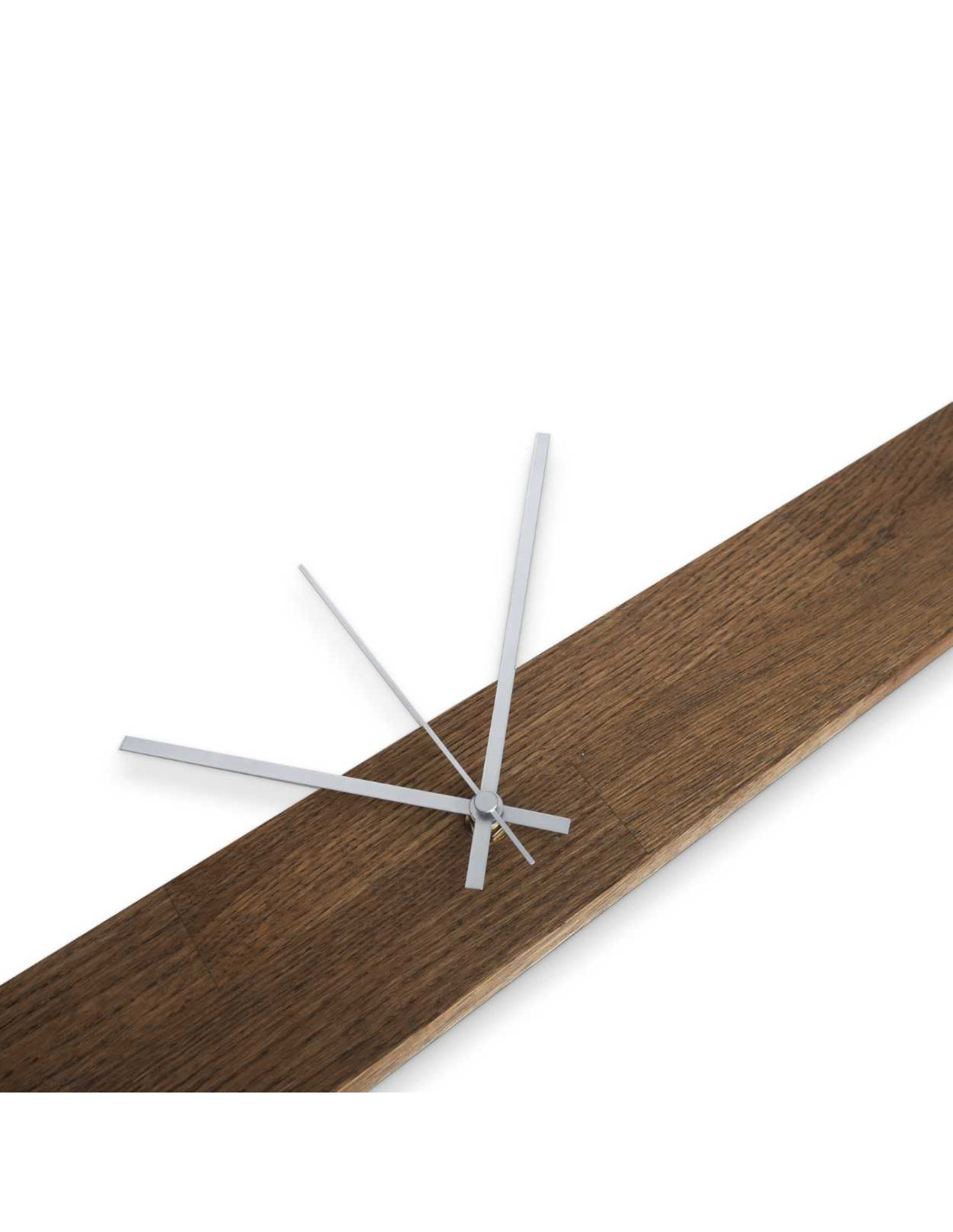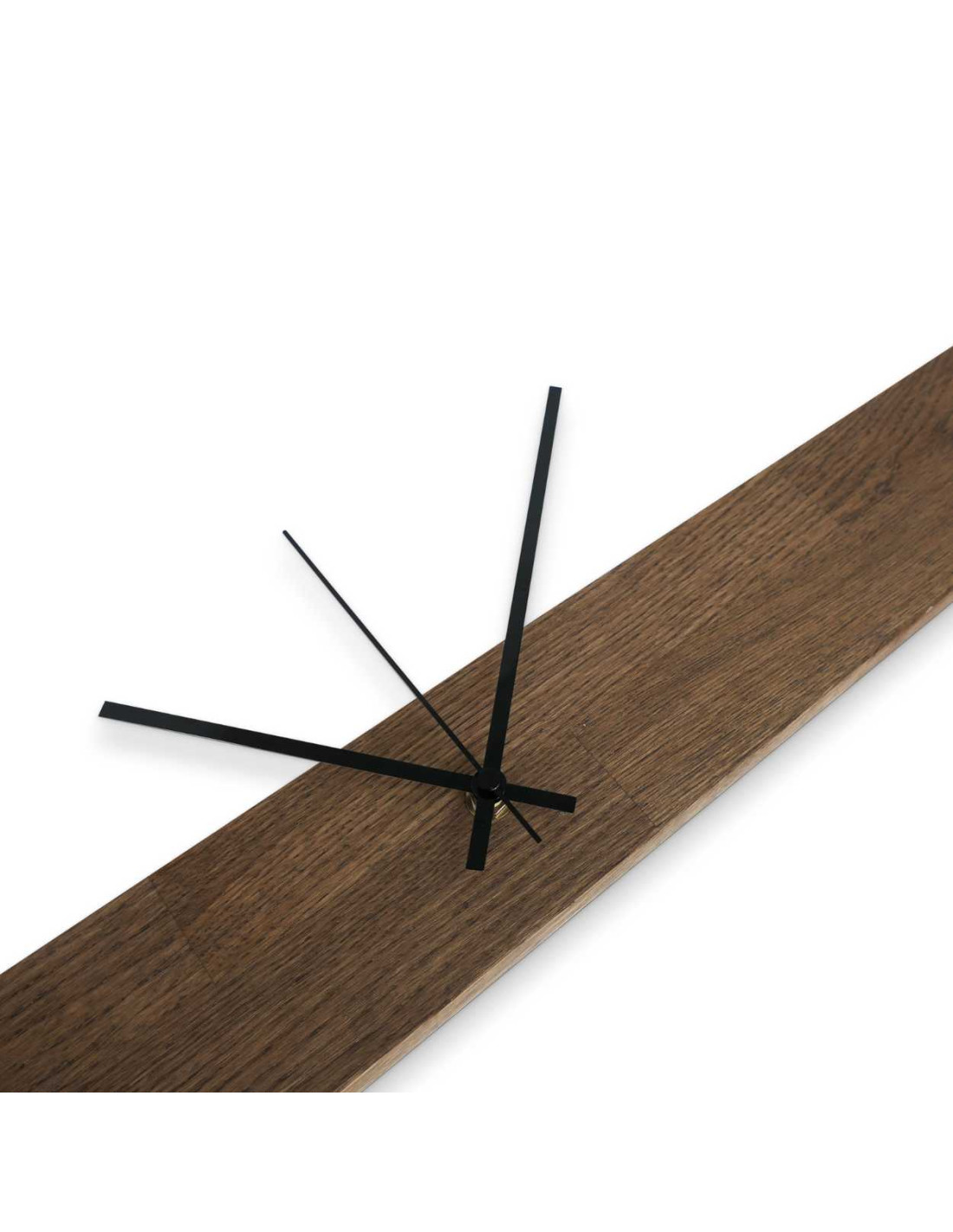 Każdy zegar wykonany jest z litych paneli dębowych, które najpierw są precyzyjnie wycinane przy użyciu technologii CNC, nadając im pożądany kształt i rozmiar.