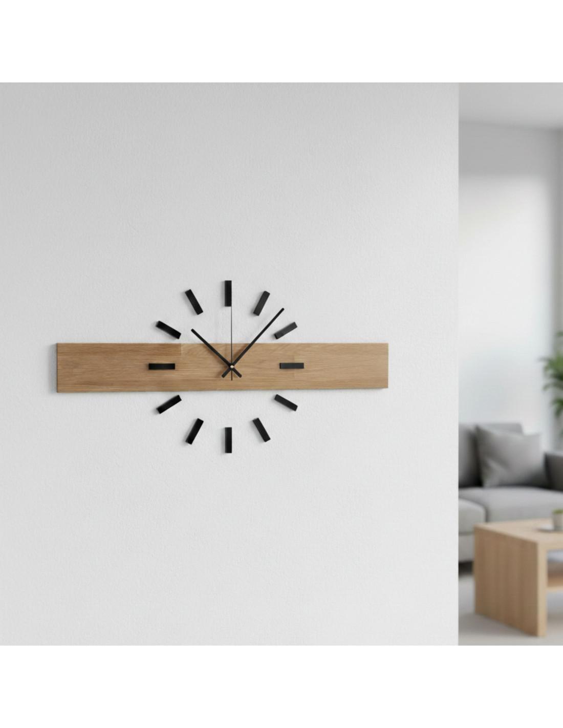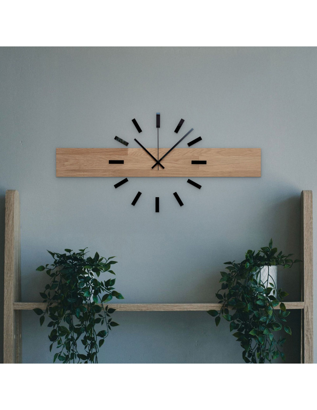 - Naturalny i elegancki design – połączenie drewna dębowego i metalowych wskazówek tworzy nowoczesny, a zarazem ponadczasowy wygląd.