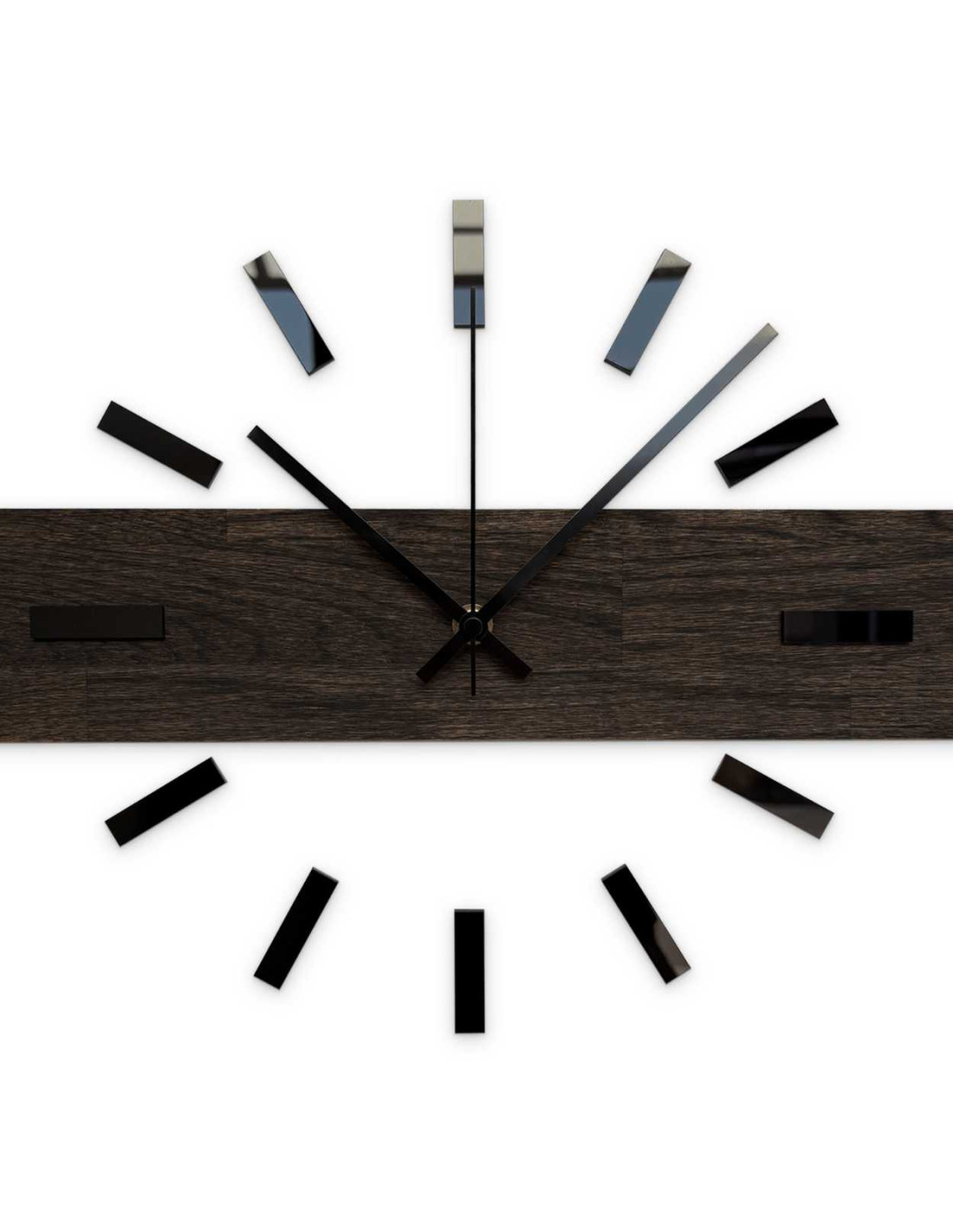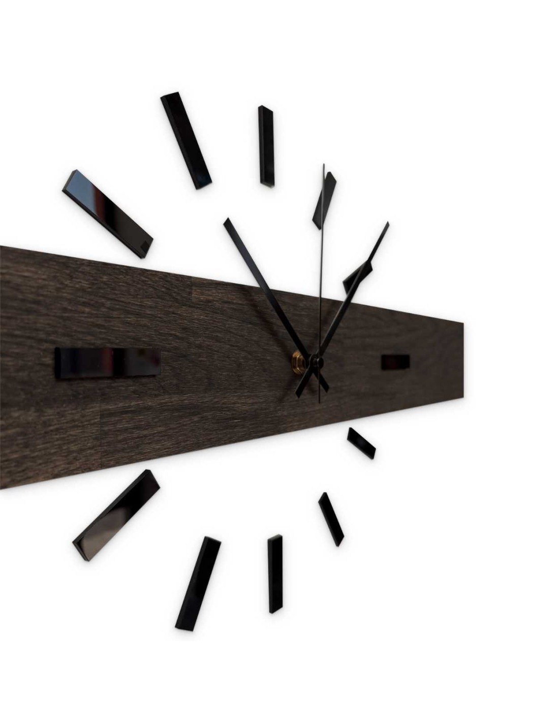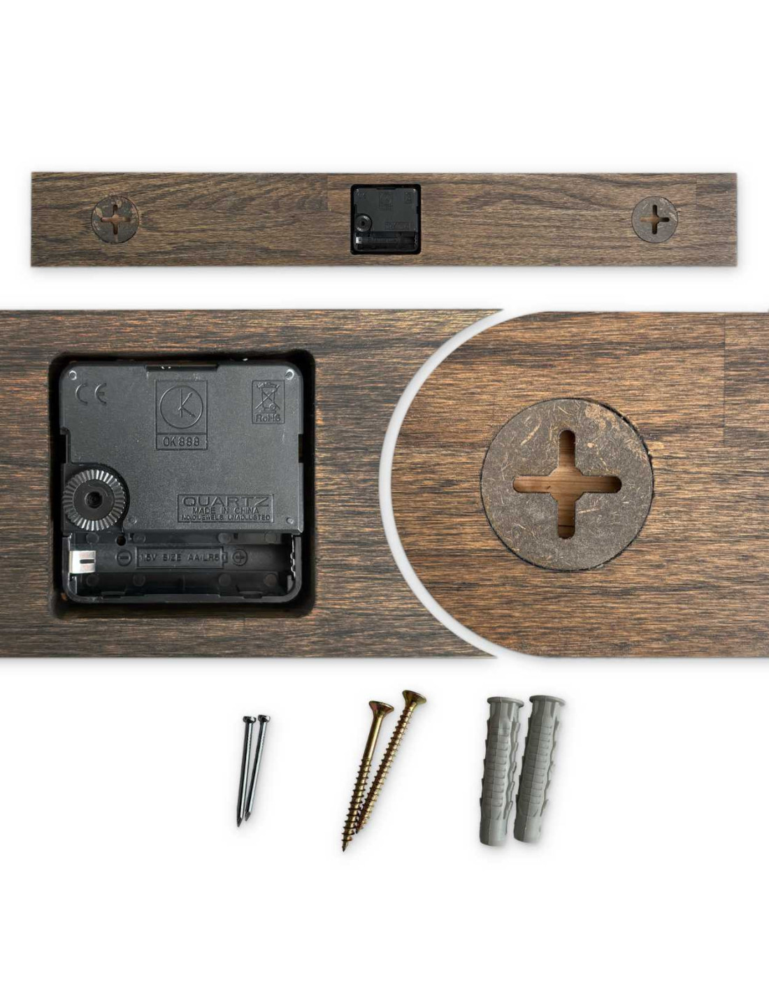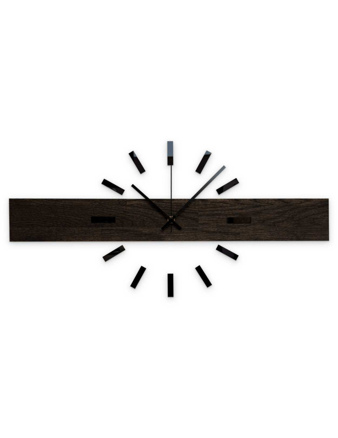 Każdy zegar wykonany jest z litych paneli dębowych, które najpierw są precyzyjnie wycinane przy użyciu technologii CNC, nadając im pożądany kształt i rozmiar.