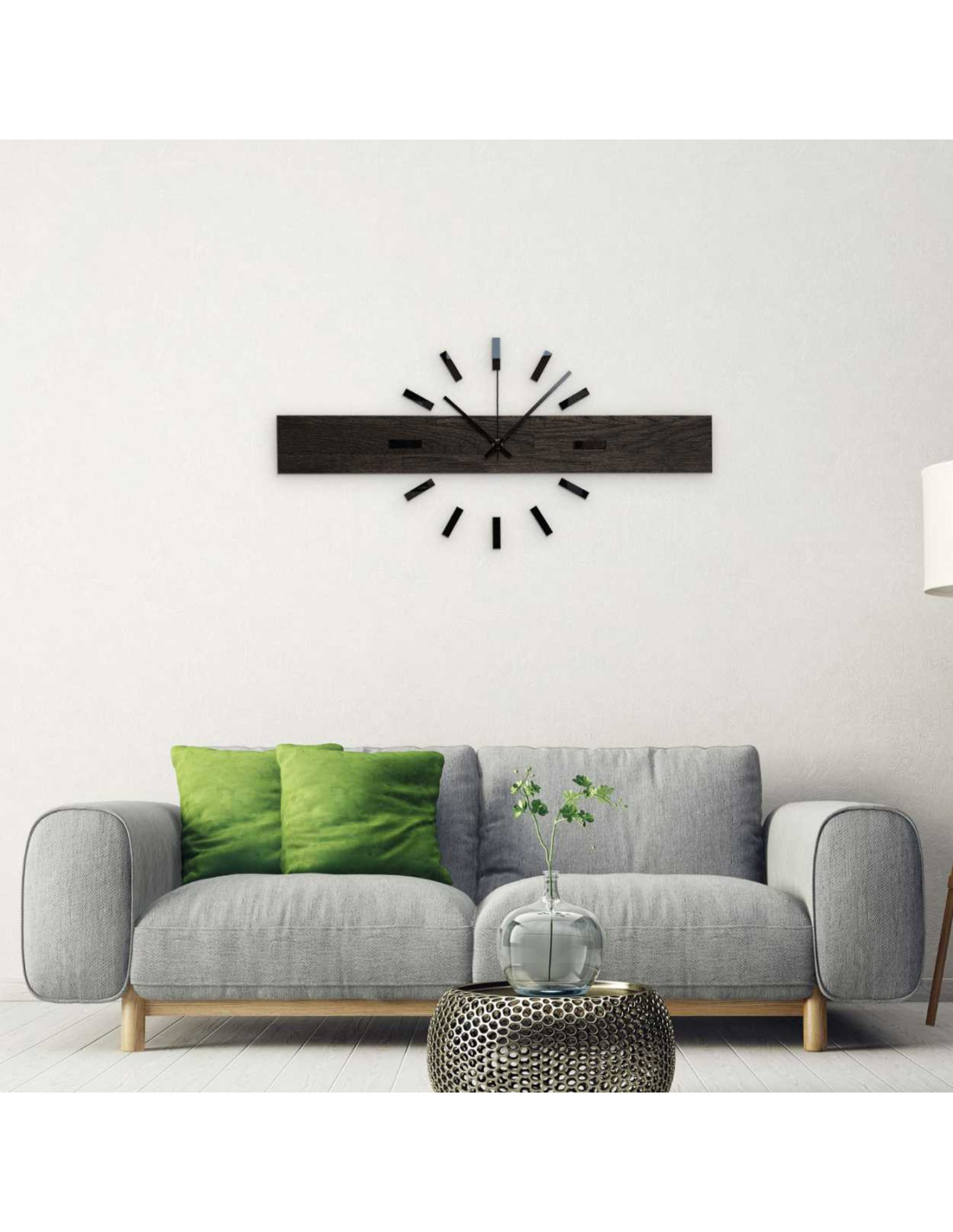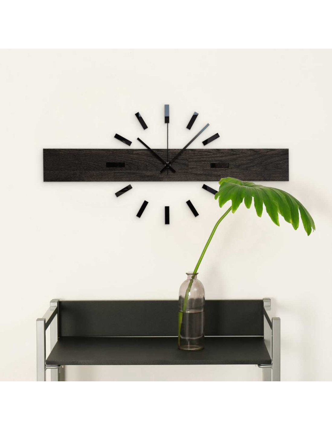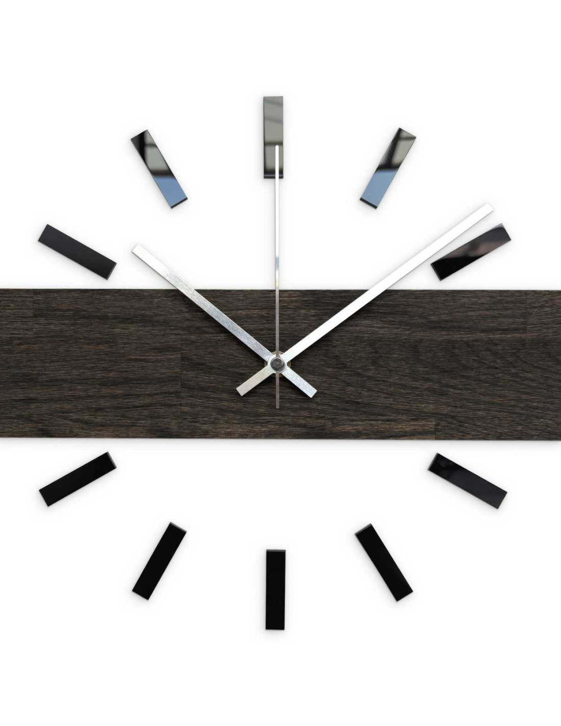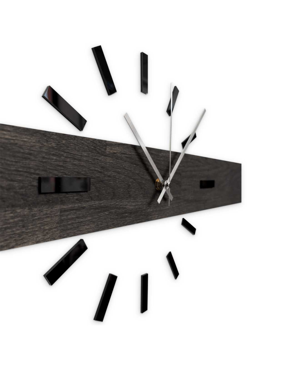 Każdy zegar wykonany jest z litych paneli dębowych, które najpierw są precyzyjnie wycinane przy użyciu technologii CNC, nadając im pożądany kształt i rozmiar.