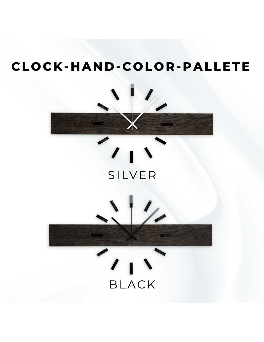 • Wskazówki zegara: metalowe, srebrno-czarne – wskazówka minutowa: 11,5 cm (4,53 cala), wskazówka godzinowa: 15,0 cm (5,91 cala), wskazówka sekundowa: 10,09 cm (3,97 cala)
