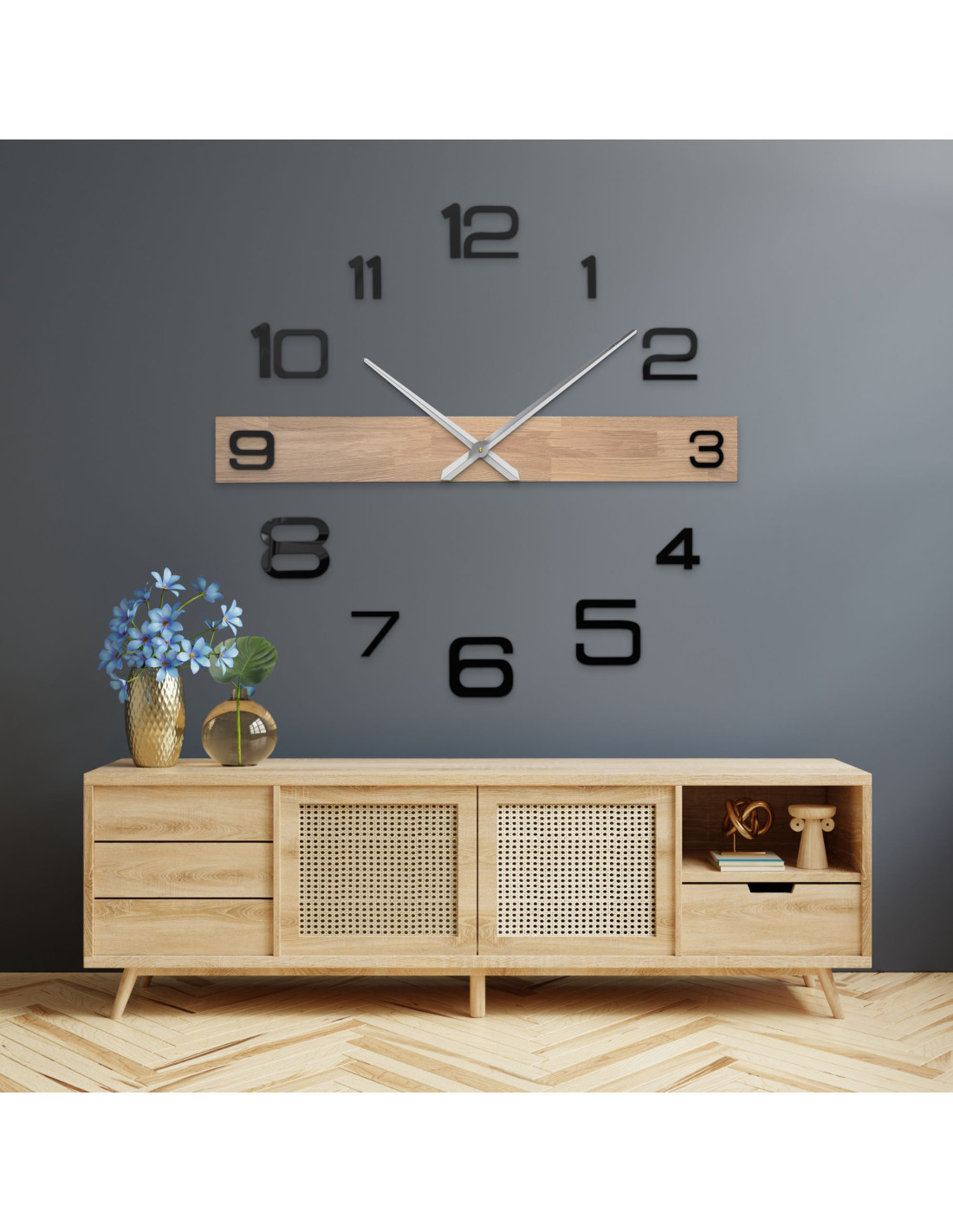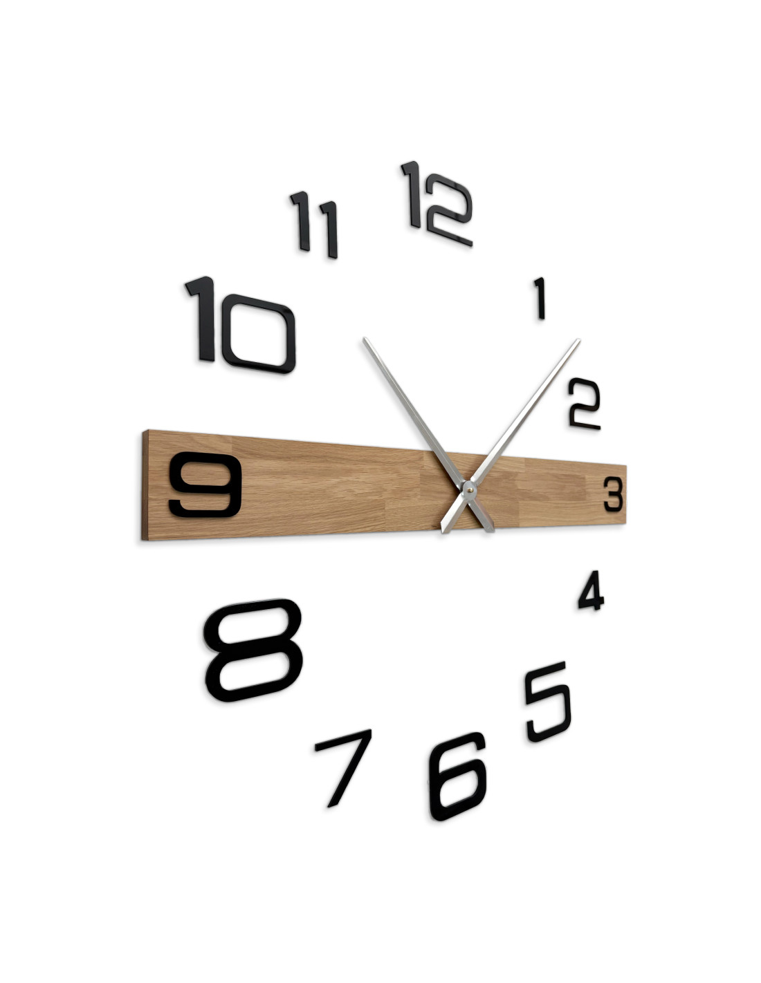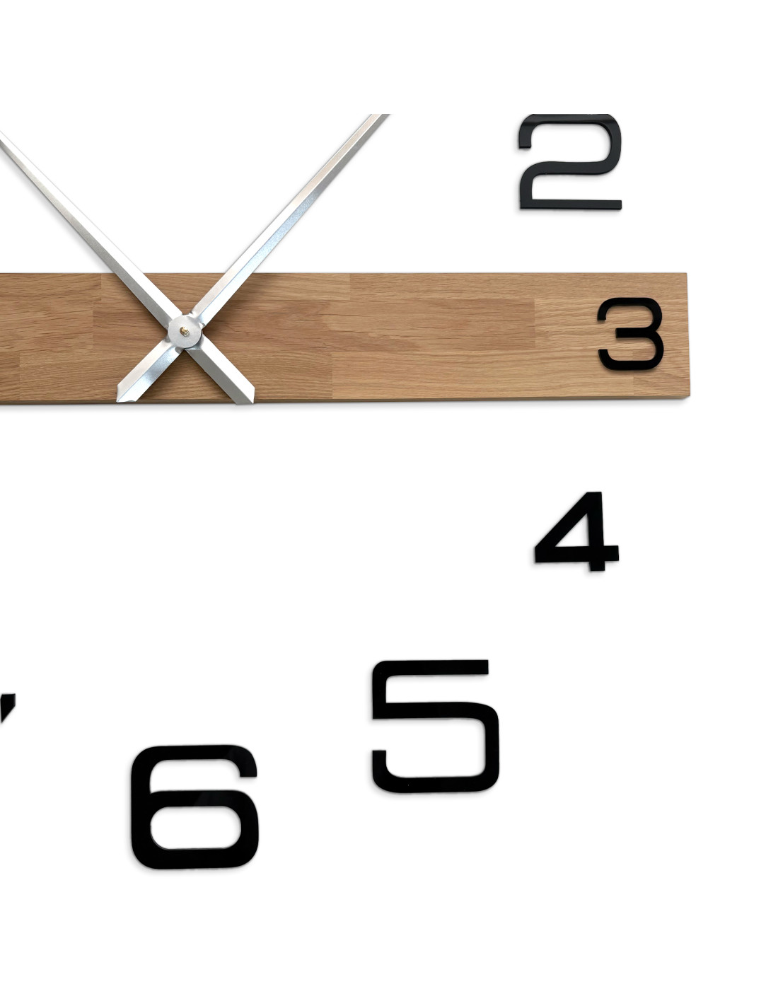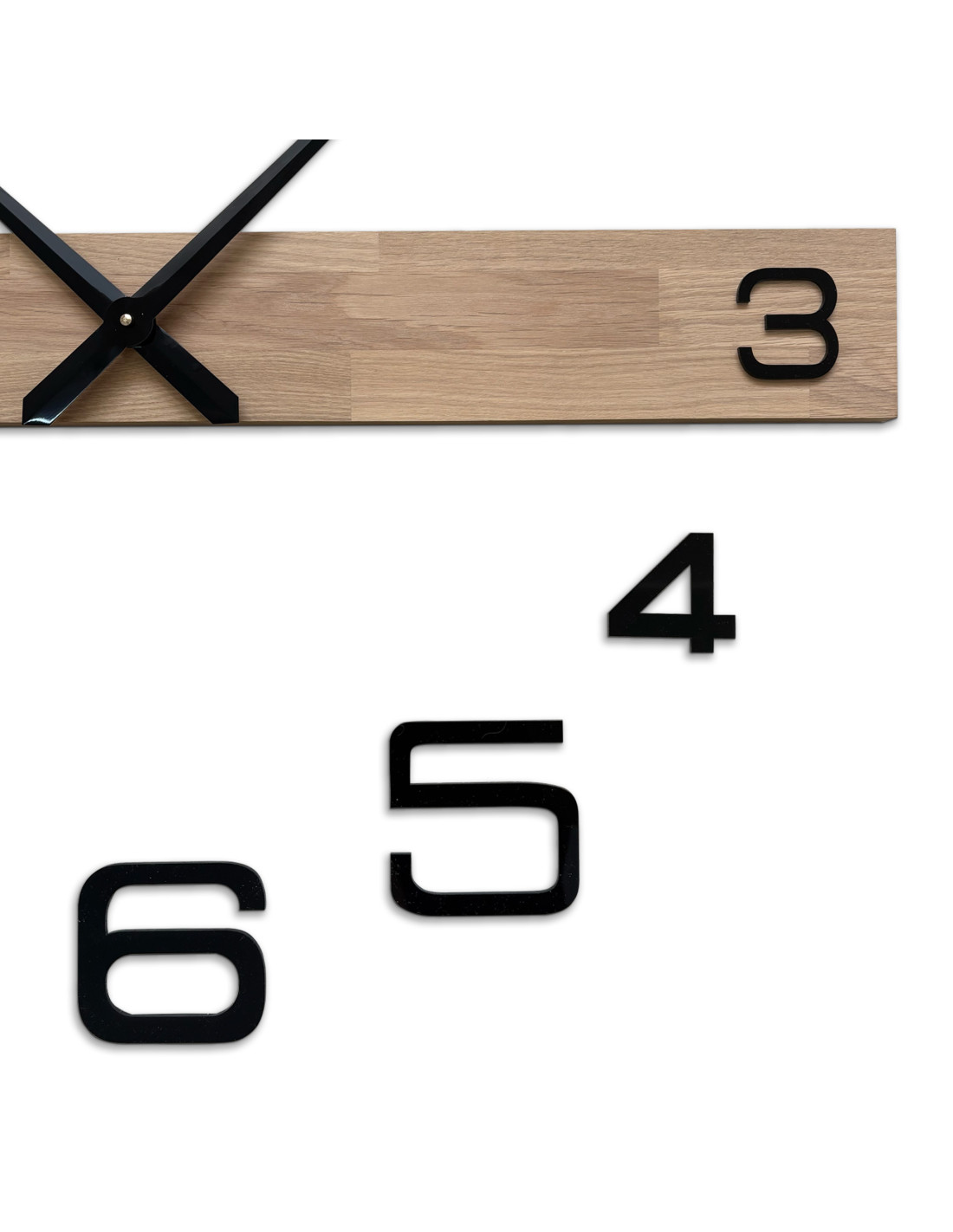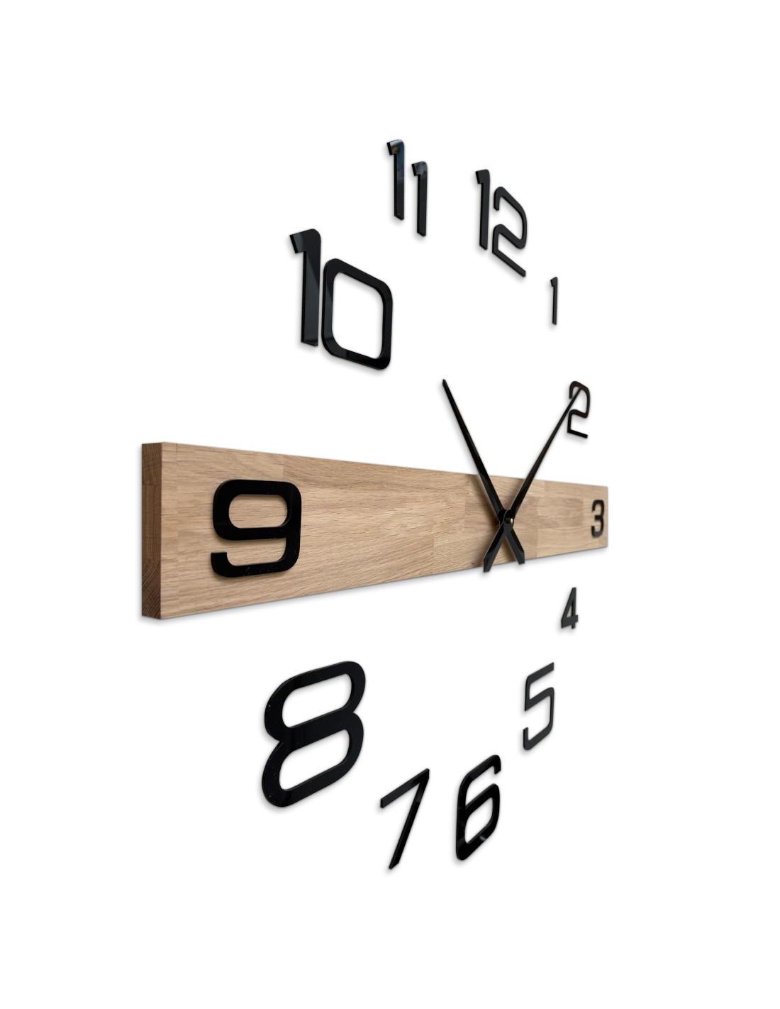 Każdy zegar wykonany jest z litych paneli dębowych , które najpierw są precyzyjnie wycinane przy użyciu technologii CNC, nadając im pożądany kształt i rozmiar.