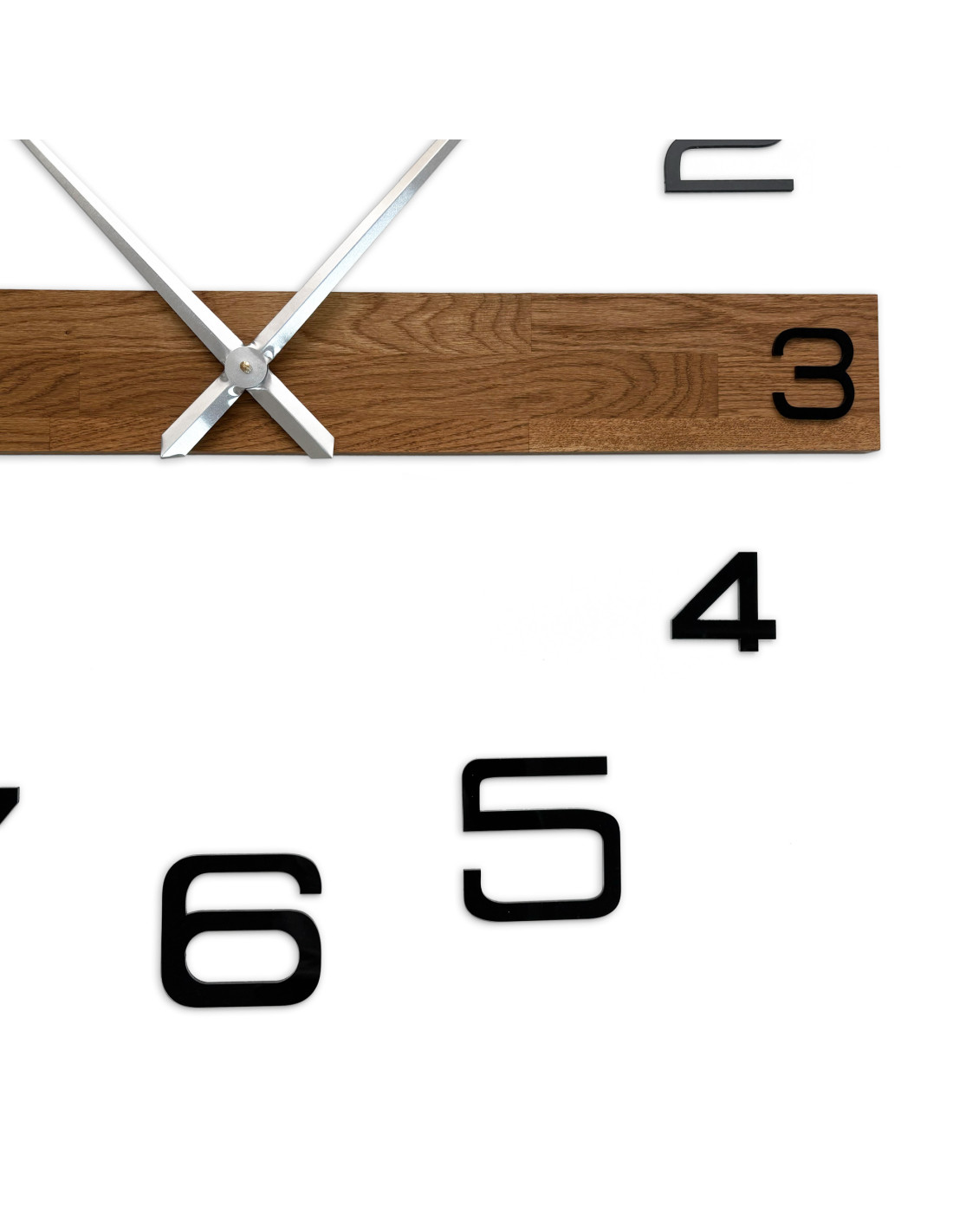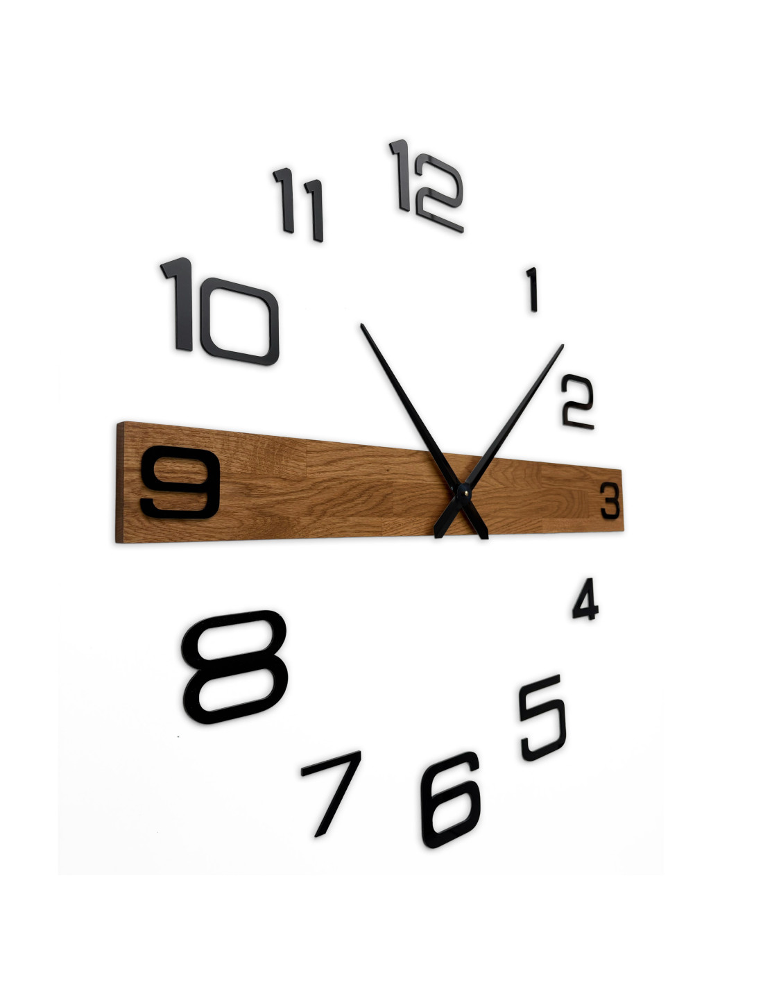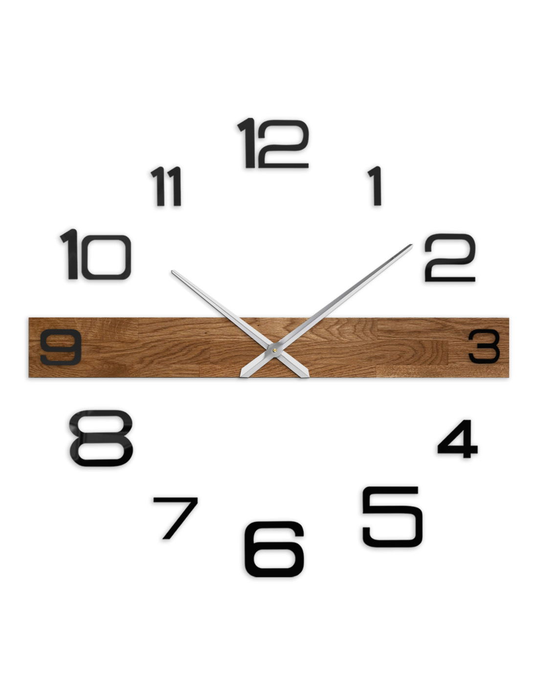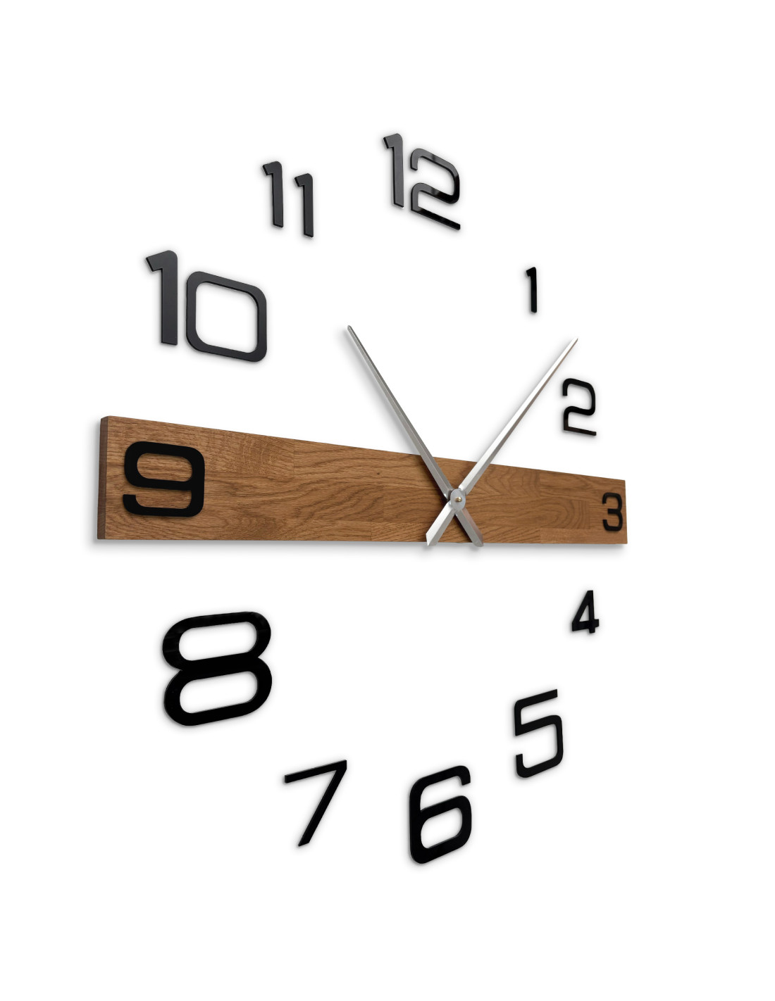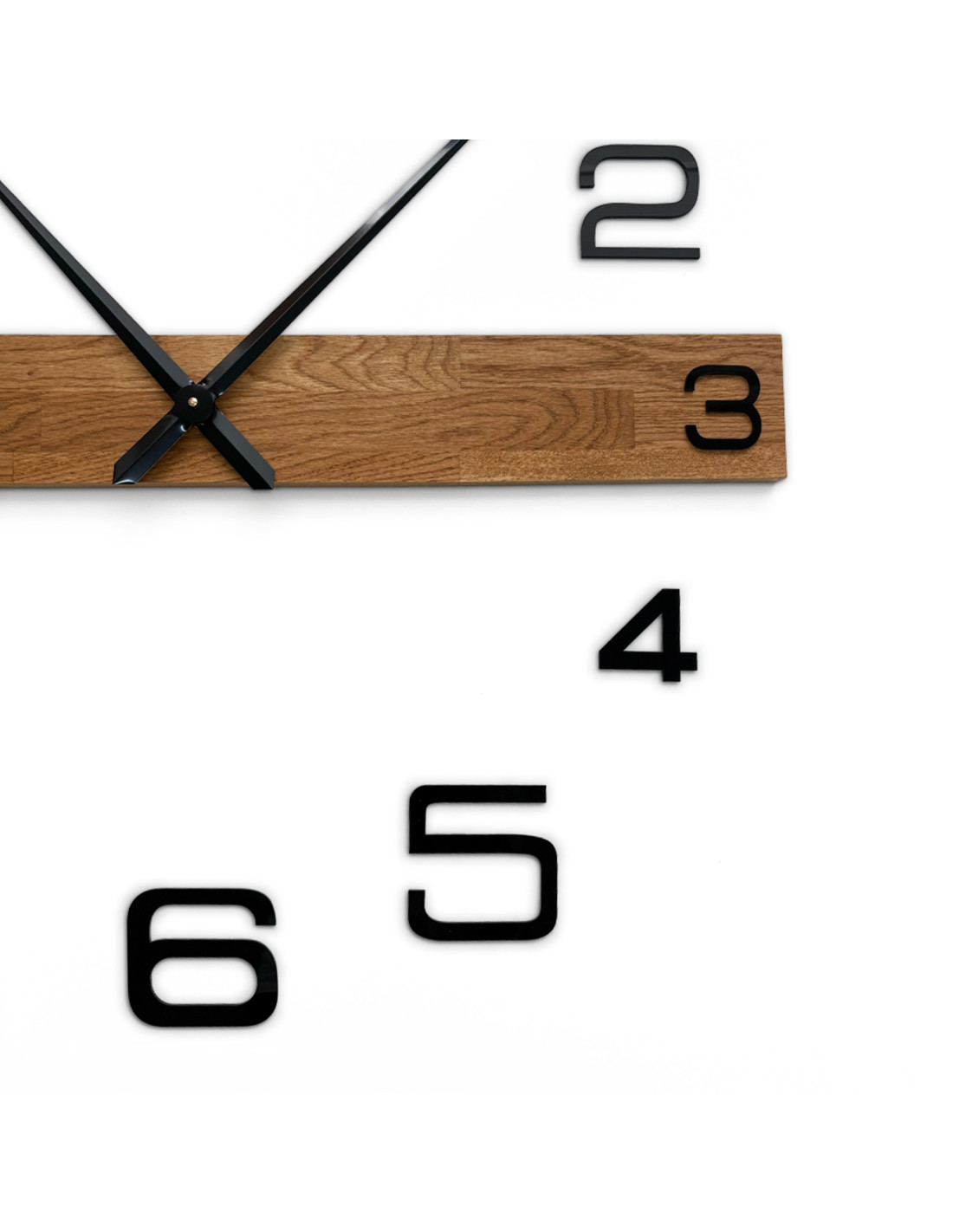 Każdy zegar wykonany jest z litych paneli dębowych , które najpierw są precyzyjnie wycinane przy użyciu technologii CNC, nadając im pożądany kształt i rozmiar.