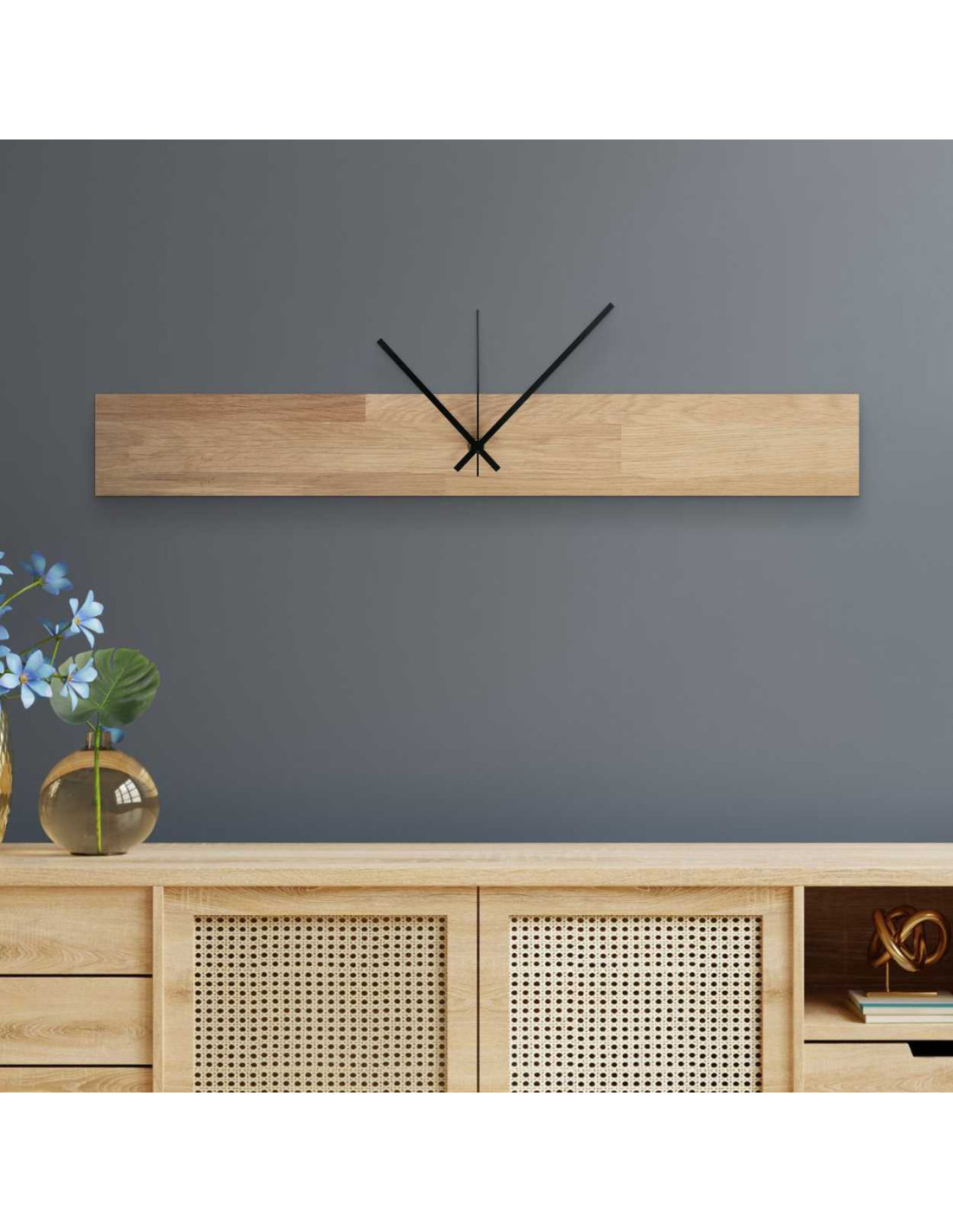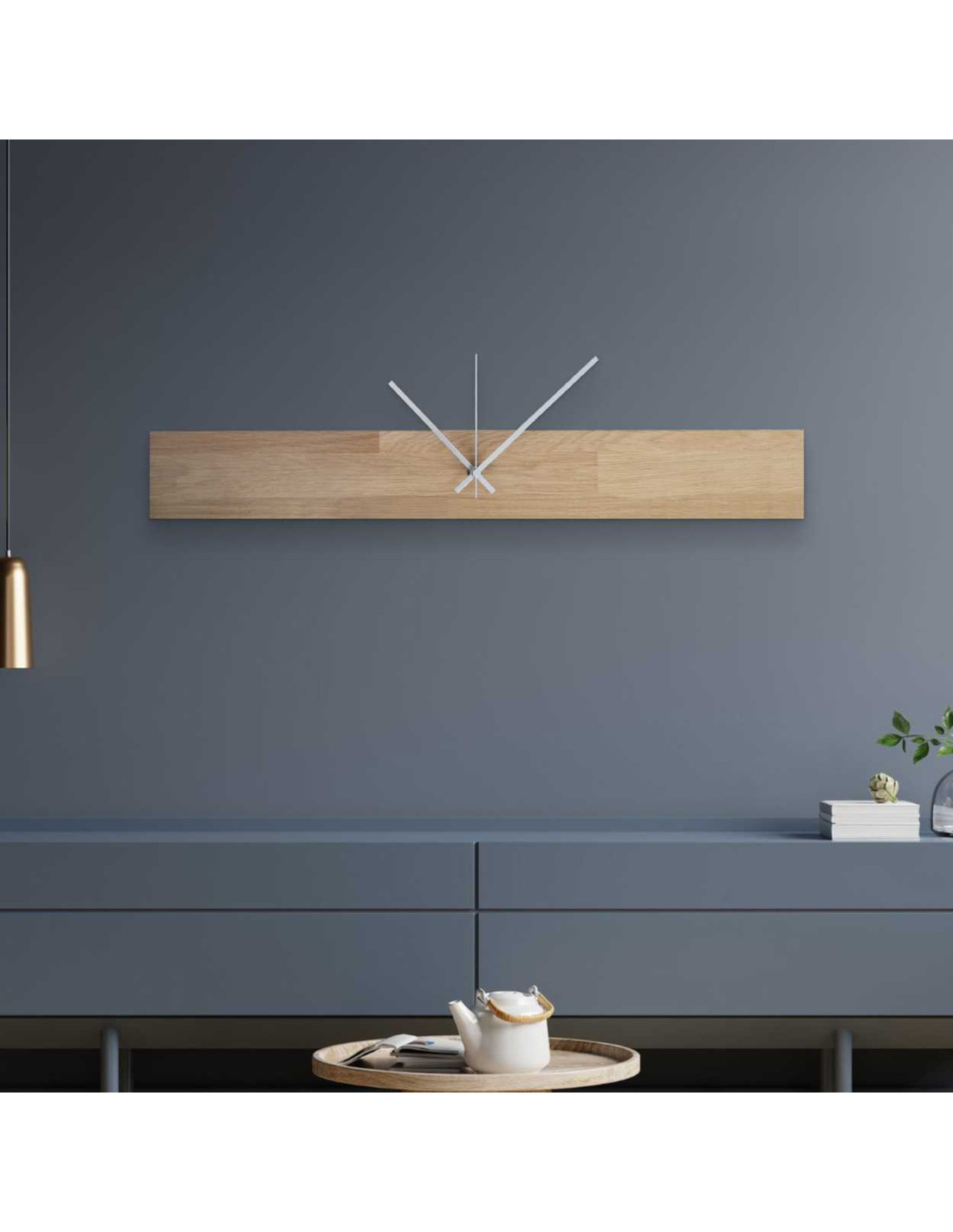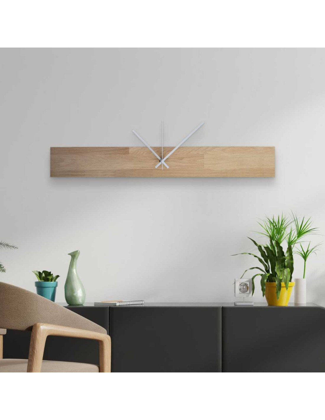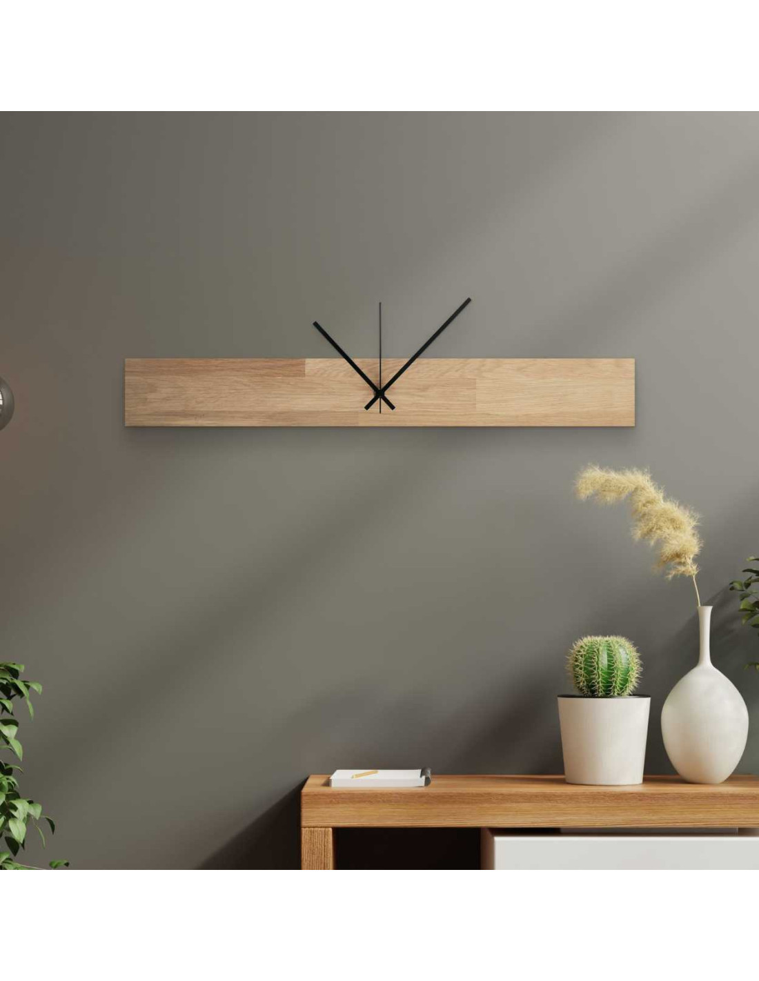 Elegancki dębowy zegar w stylu skandynawskim, idealny do uzupełnienia nowoczesnego wnętrza. Prosty, stylowy i ponadczasowy – idealny dodatek do Twojego domu.