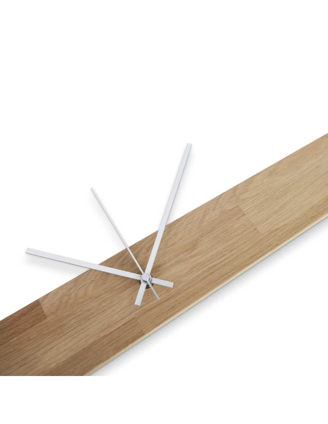 Każdy zegar wykonany jest z litych paneli dębowych, które najpierw są precyzyjnie wycinane przy użyciu technologii CNC, nadając im pożądany kształt i rozmiar.