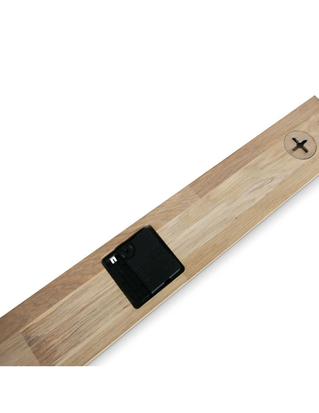 - Elegancki design: połączenie drewna dębowego i metalowych wskazówek tworzy nowoczesny, a zarazem ponadczasowy wygląd.