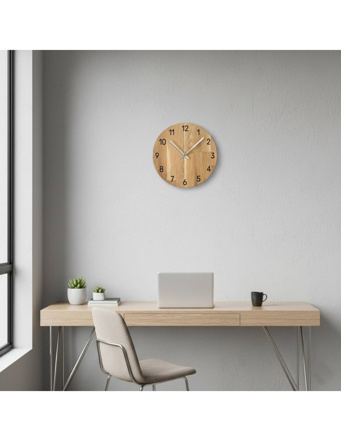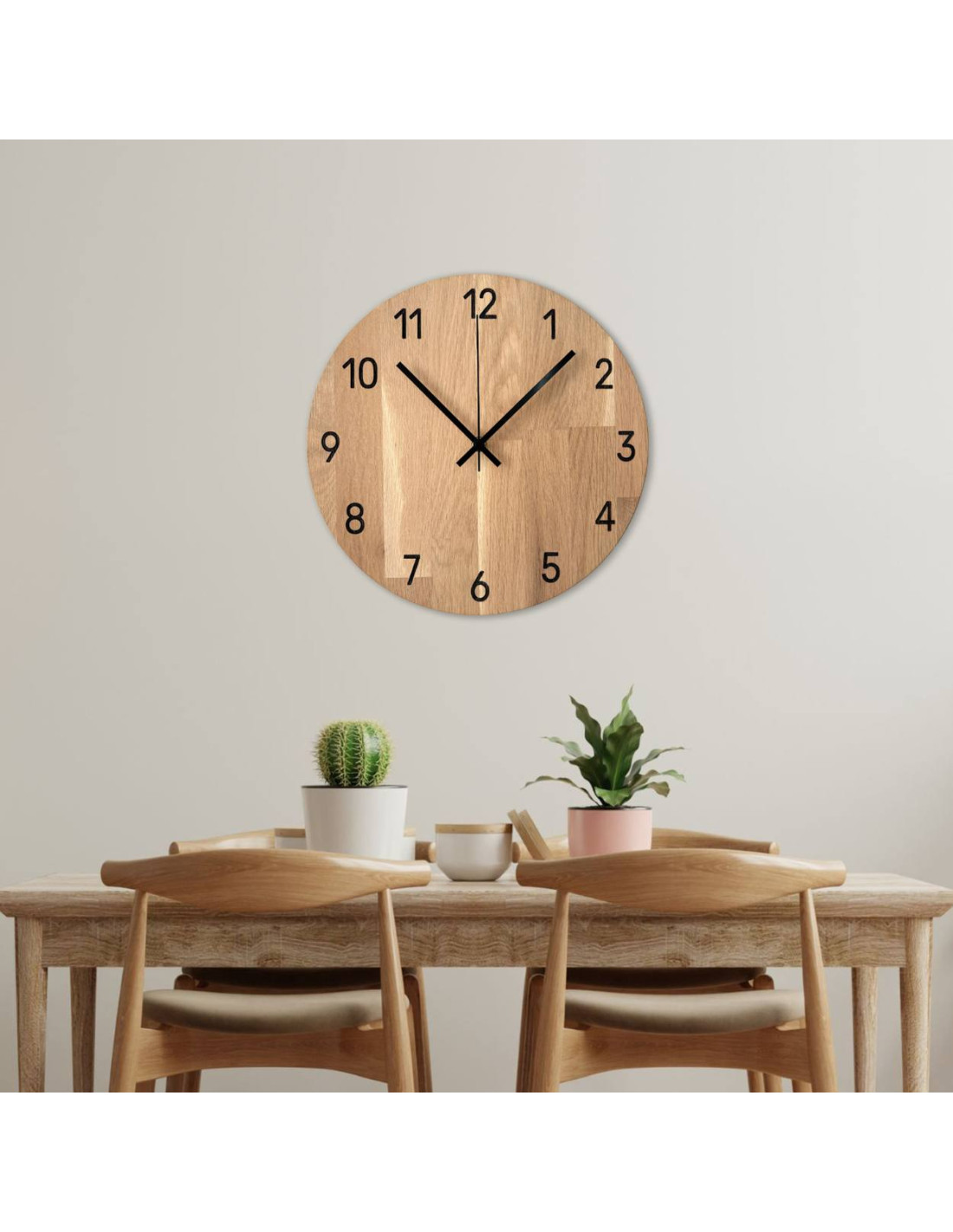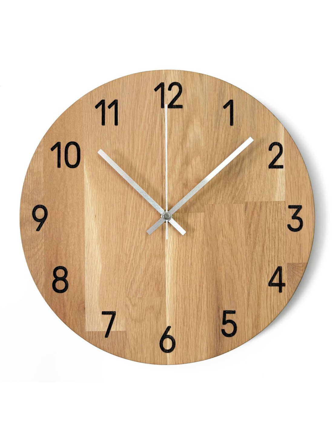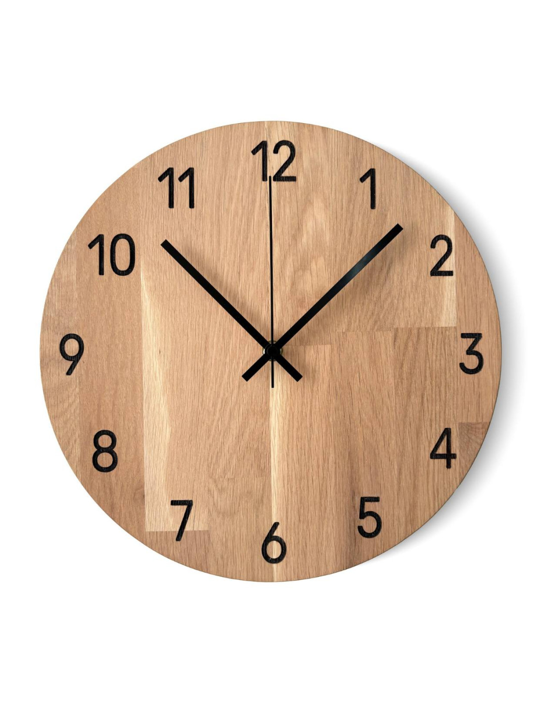 - Elegancki design: połączenie drewna dębowego i metalowych wskazówek tworzy nowoczesny, a zarazem ponadczasowy wygląd.