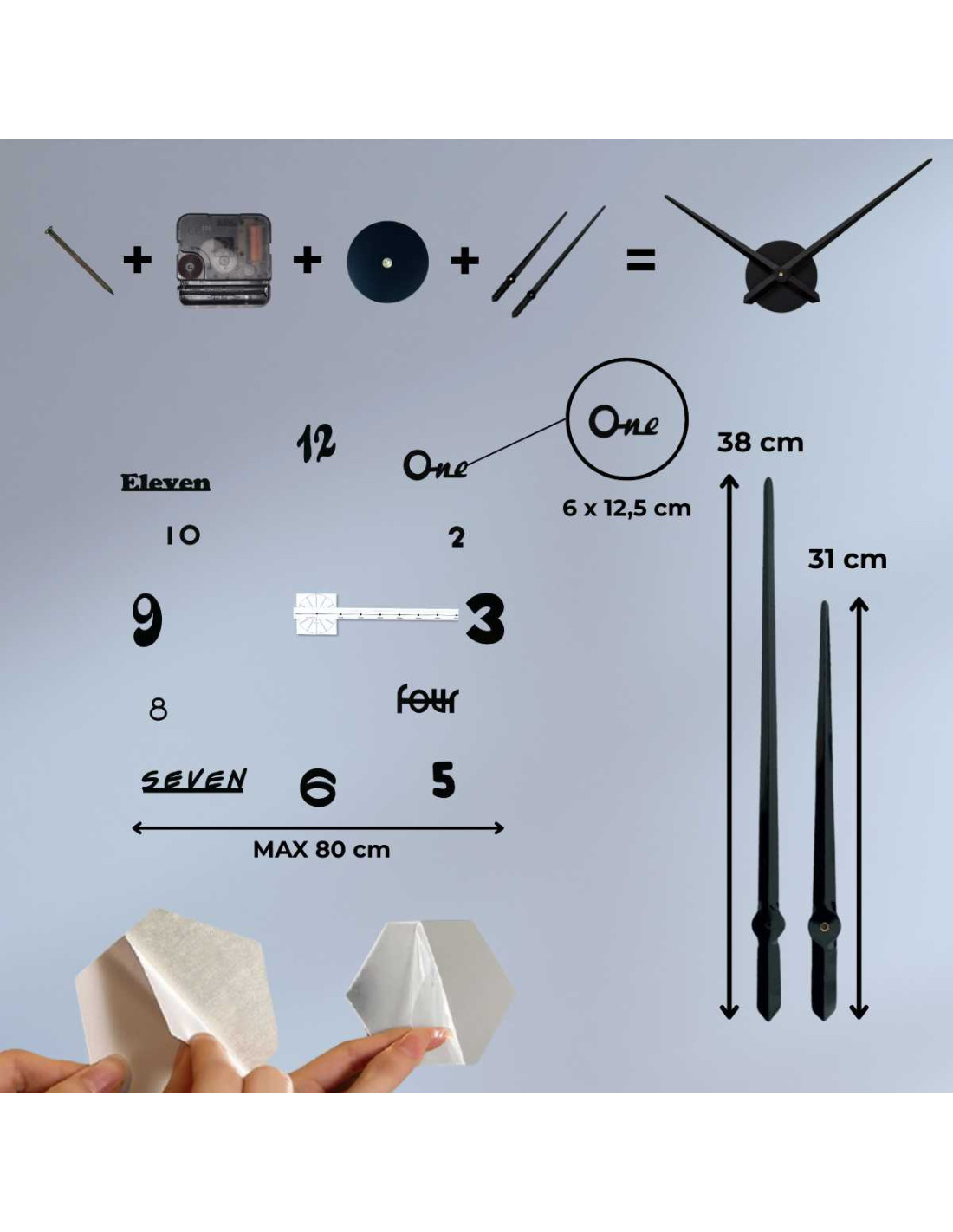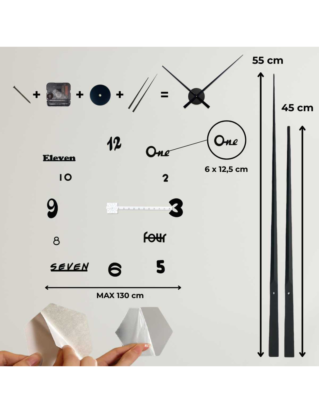 Ten nowoczesny zegar łączy w sobie elegancki minimalistyczny design, cichy i płynnie pracujący mechanizm z trzema wskazówkami oraz łatwość montażu bez wiercenia.