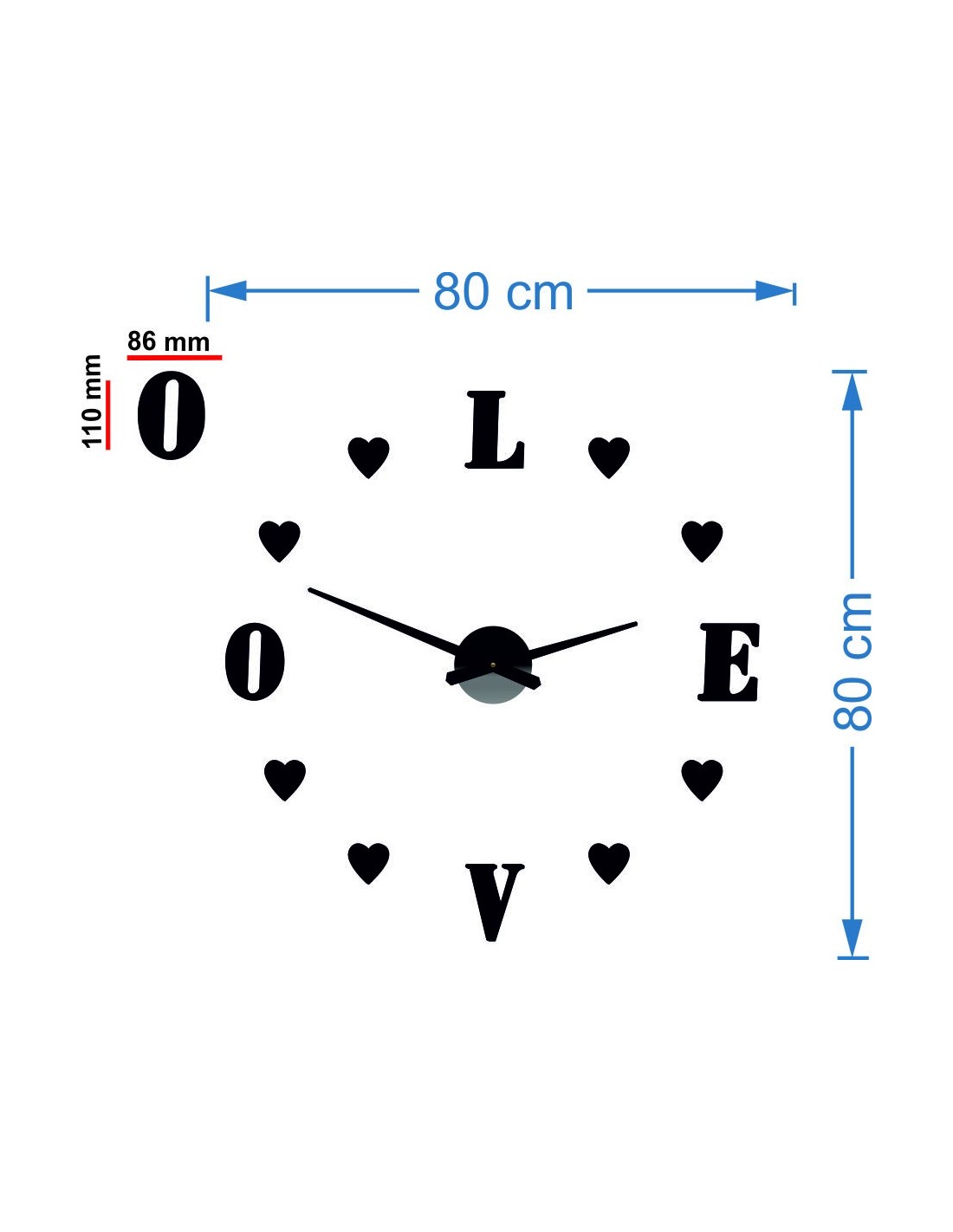 Duży samoprzylepny zegar ścienny - MIŁOŚĆ